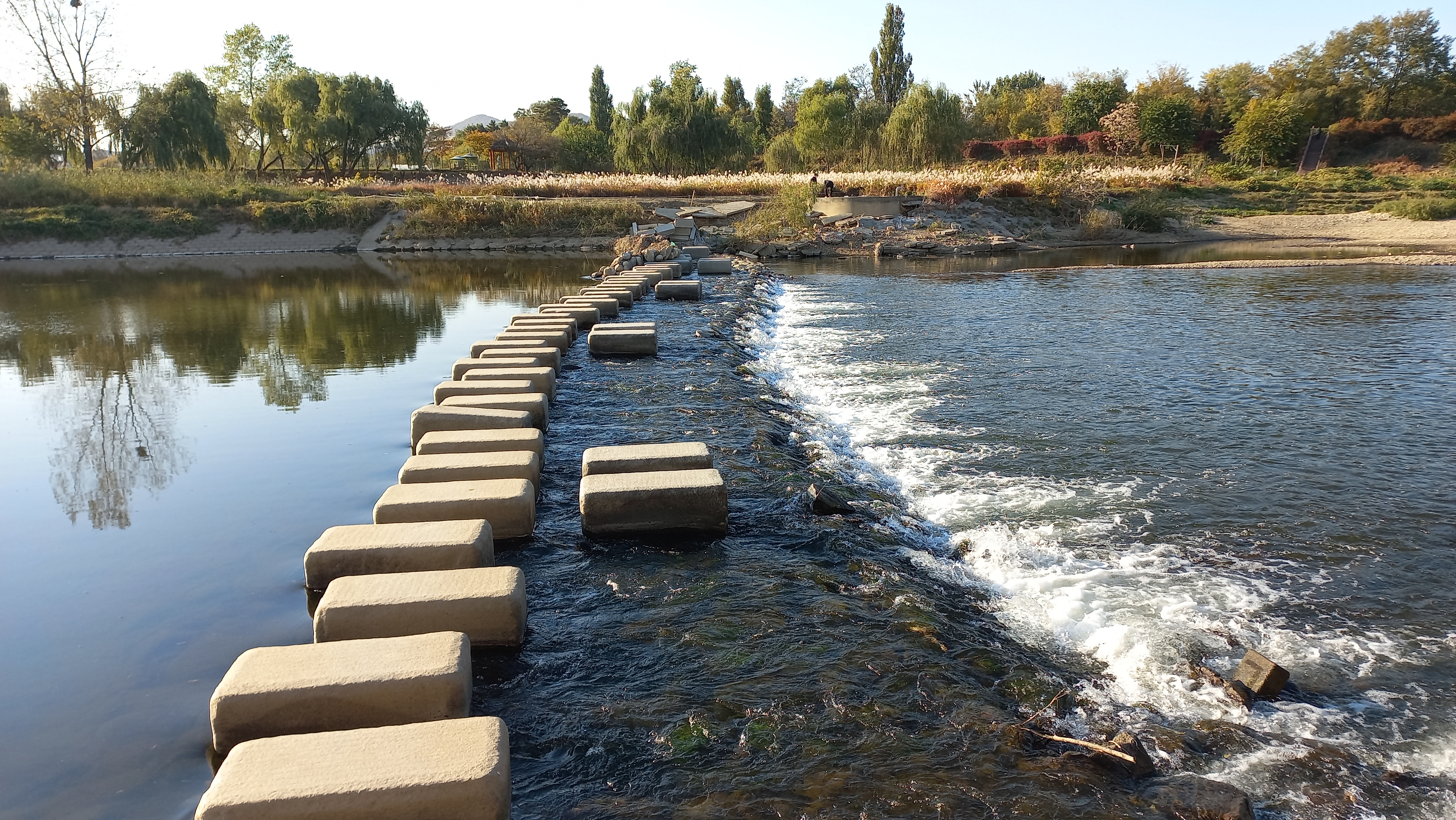 탄천을 가로지르는 돌다리에서 잠시 쉬어 갑니다.