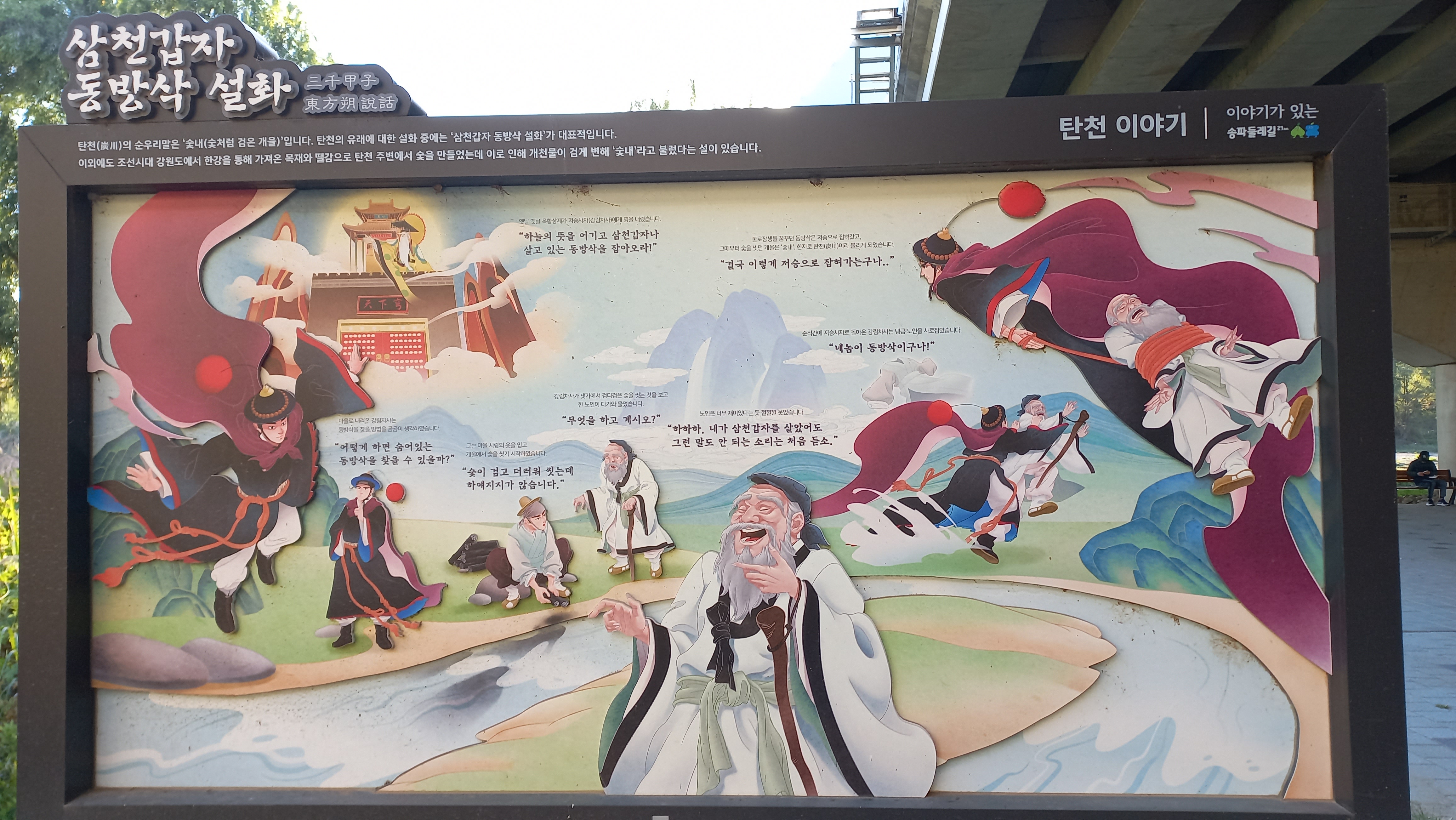 숯내교가 있는 탄천에는 장수의 대명사로 알려진 삼천갑자 동방삭에 대한 전설이 내려오는 곳입니다.
