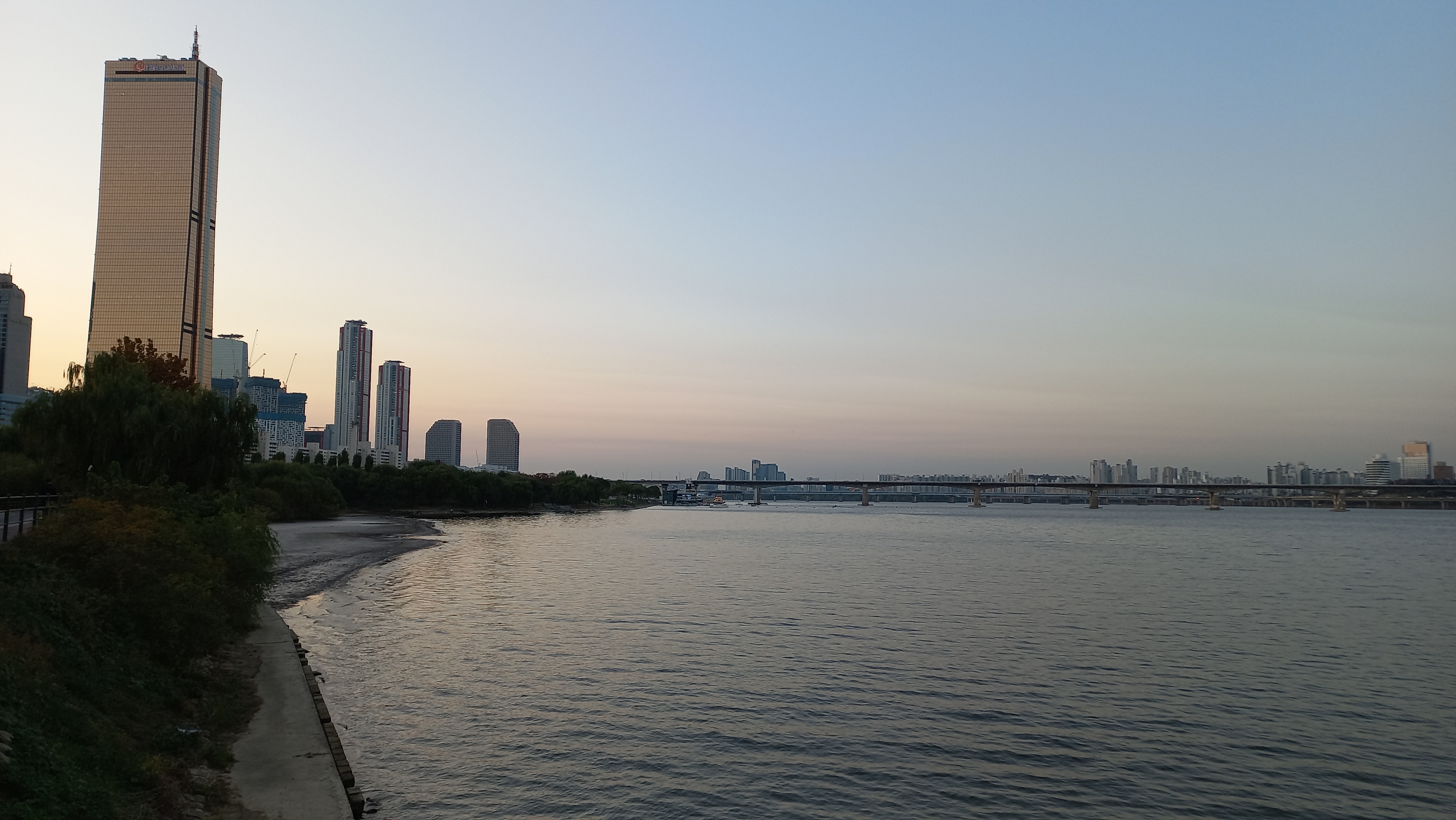 여의도 인근에 도착하니 벌써 해가 지고 있네요.