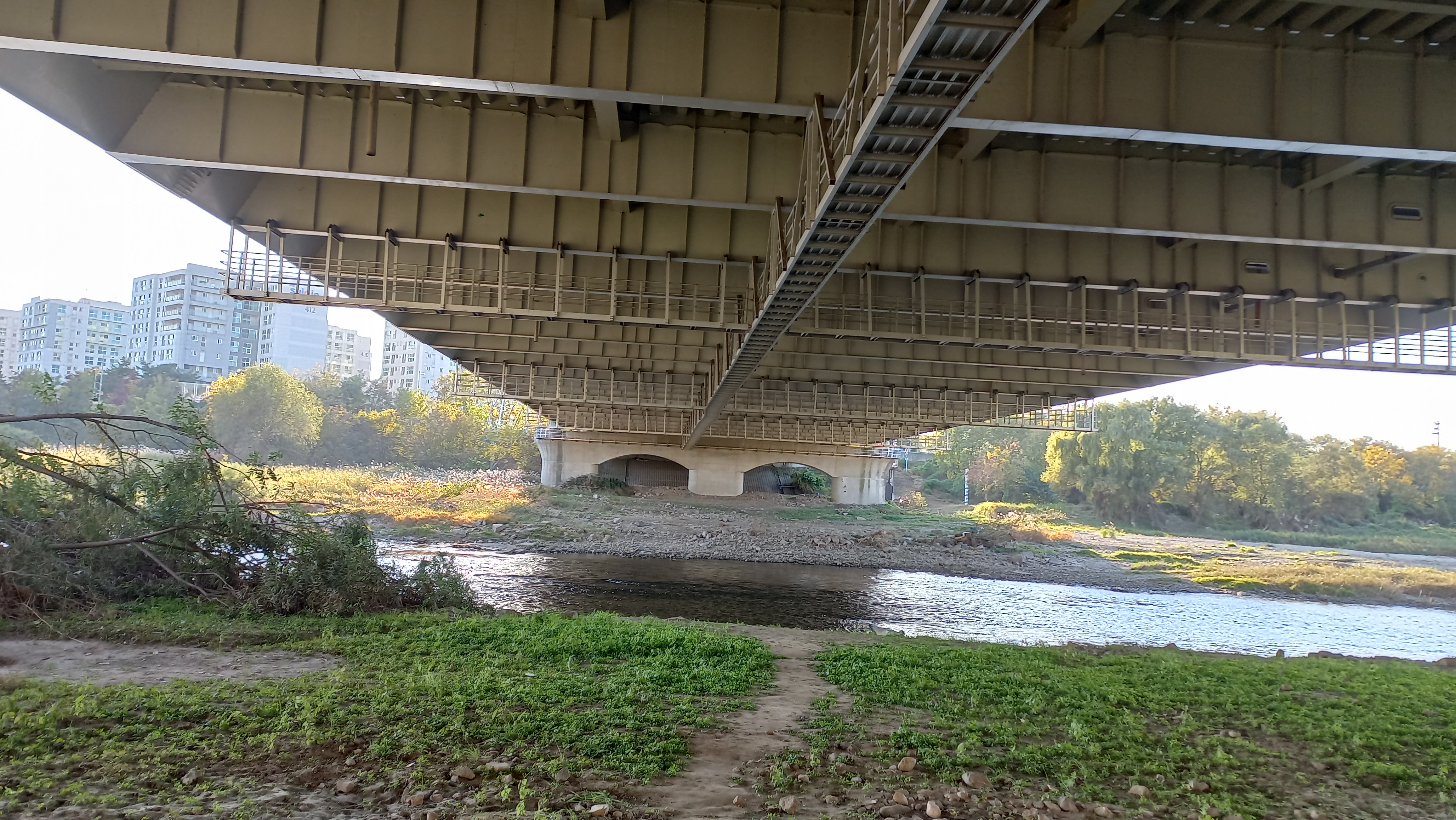 광평교 아래로 탄천을 가로지르는 탄천교