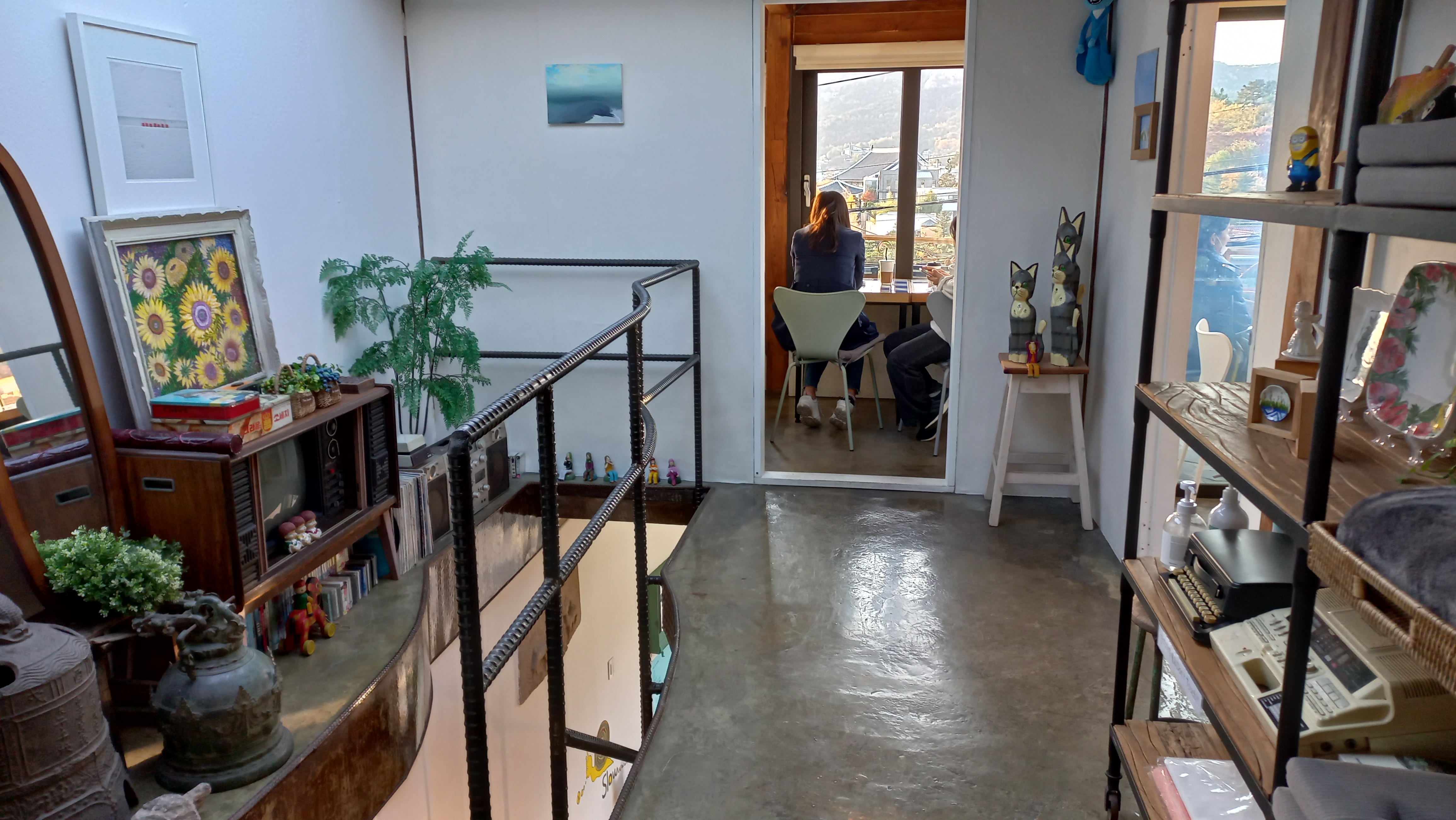 이곳에서 음료를 주문하거나 공방체험을 신청하고 보통 전망 좋은 2층으로 올라갑니다.