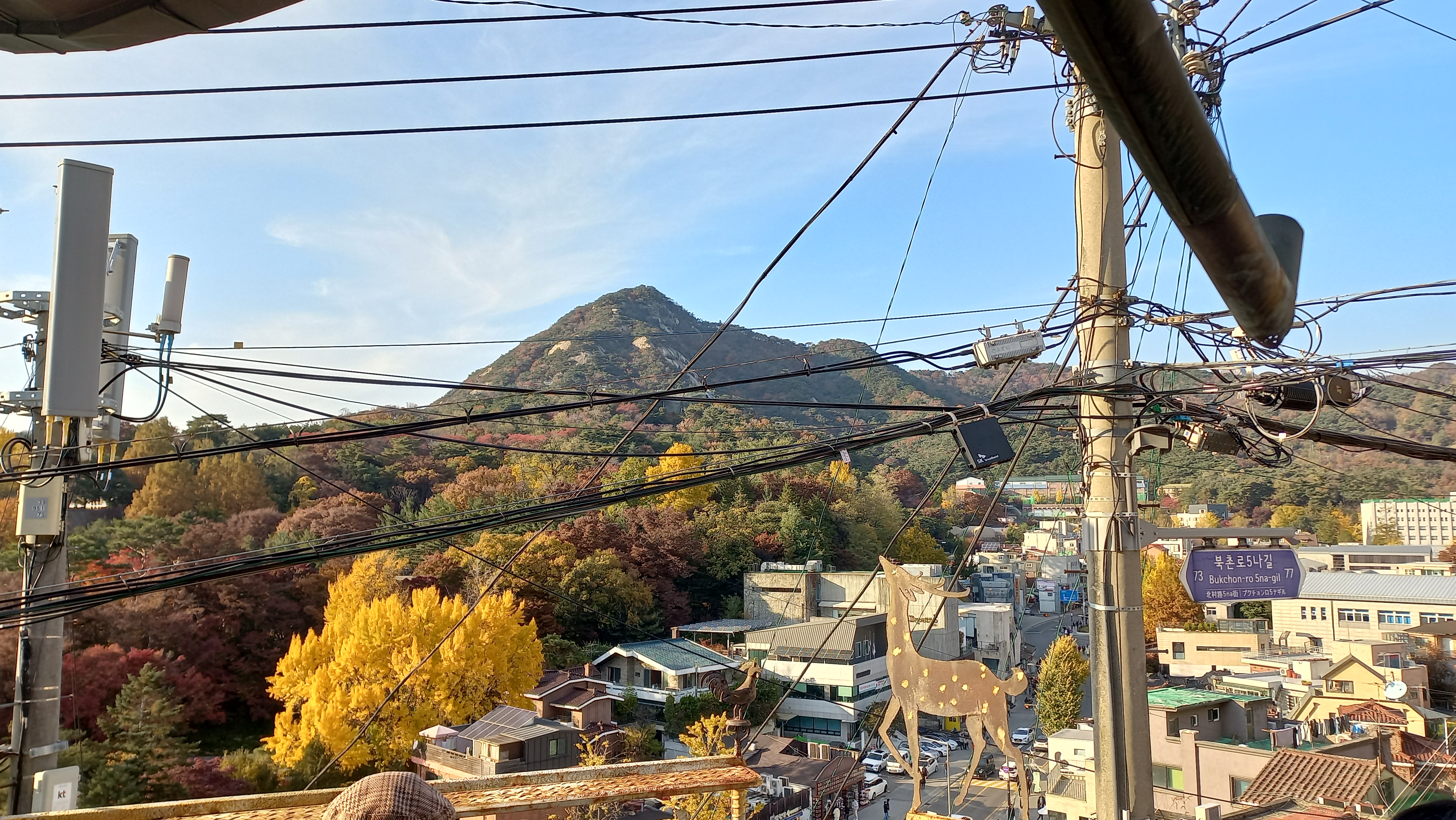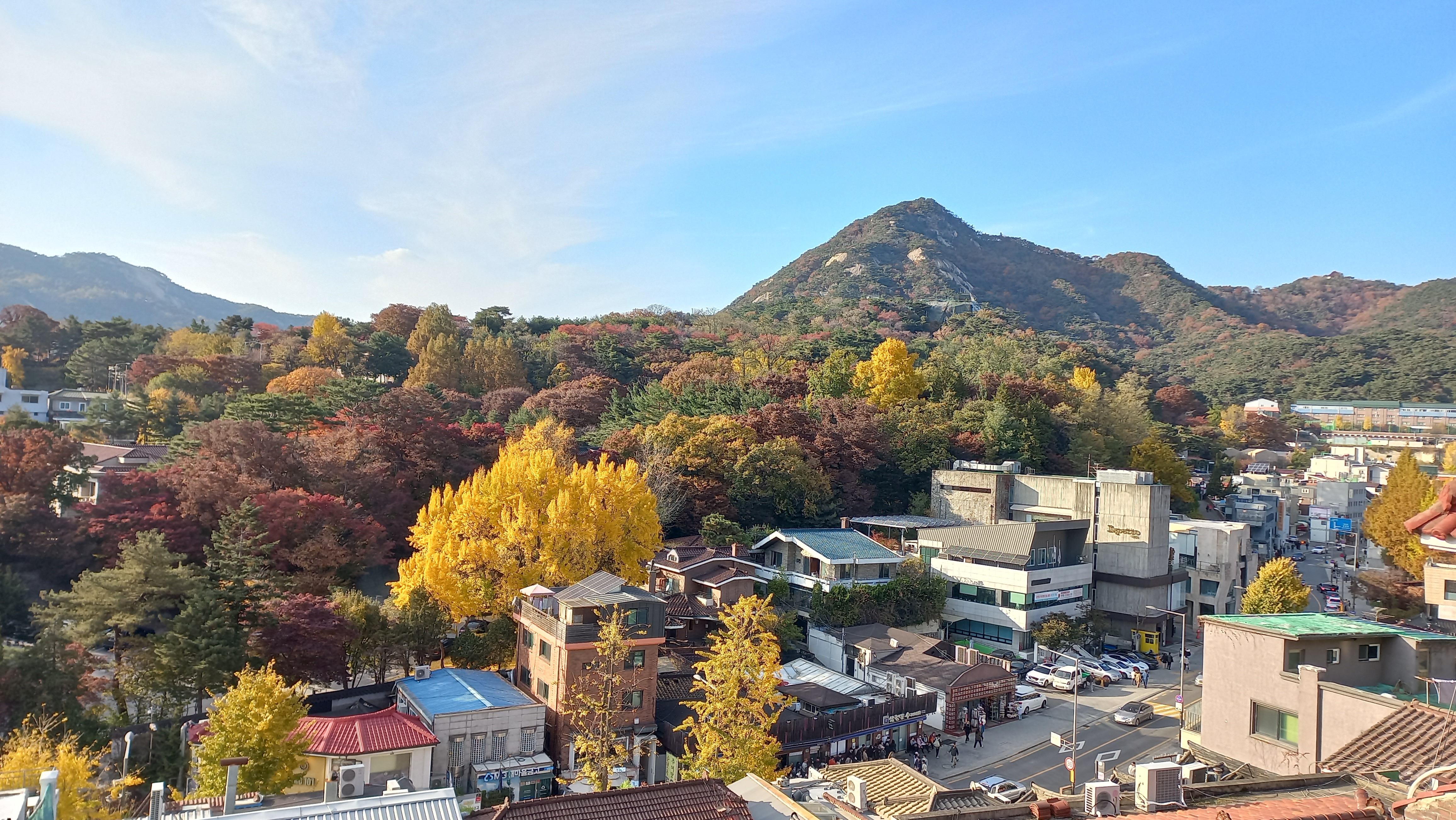 북촌한옥마을의 북촌로 5나길은 삼청동 언덕 위에 있는 골목으로 북악산 전망이 좋은 길입니다.