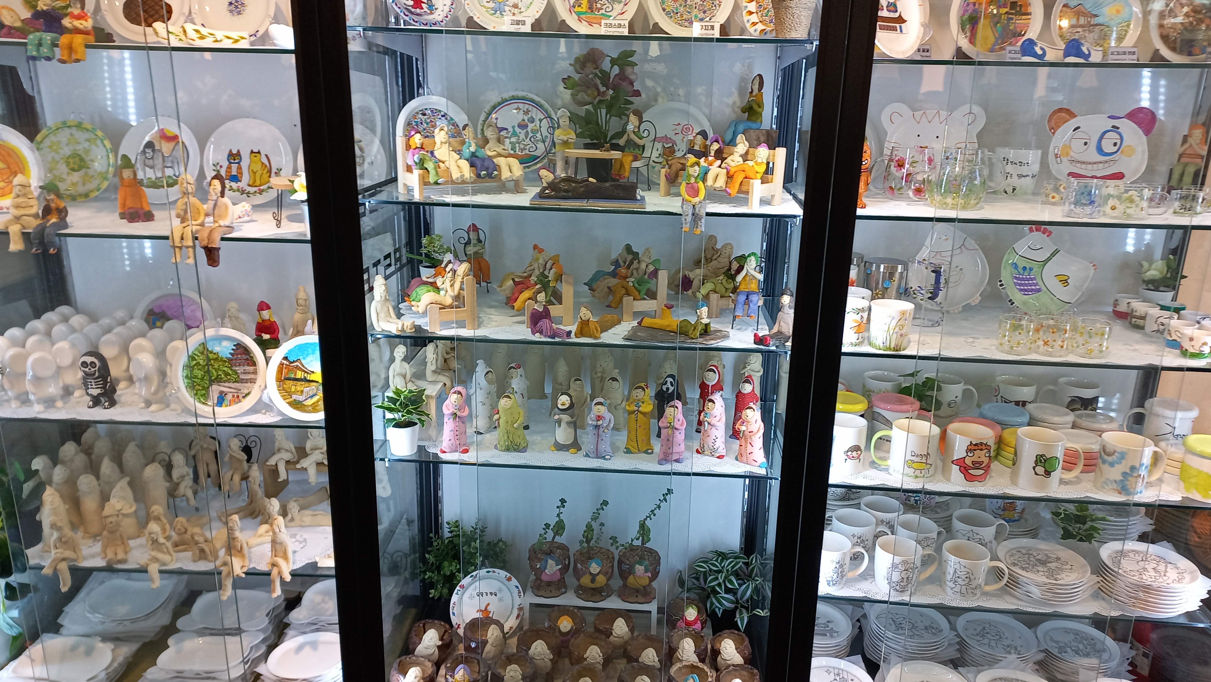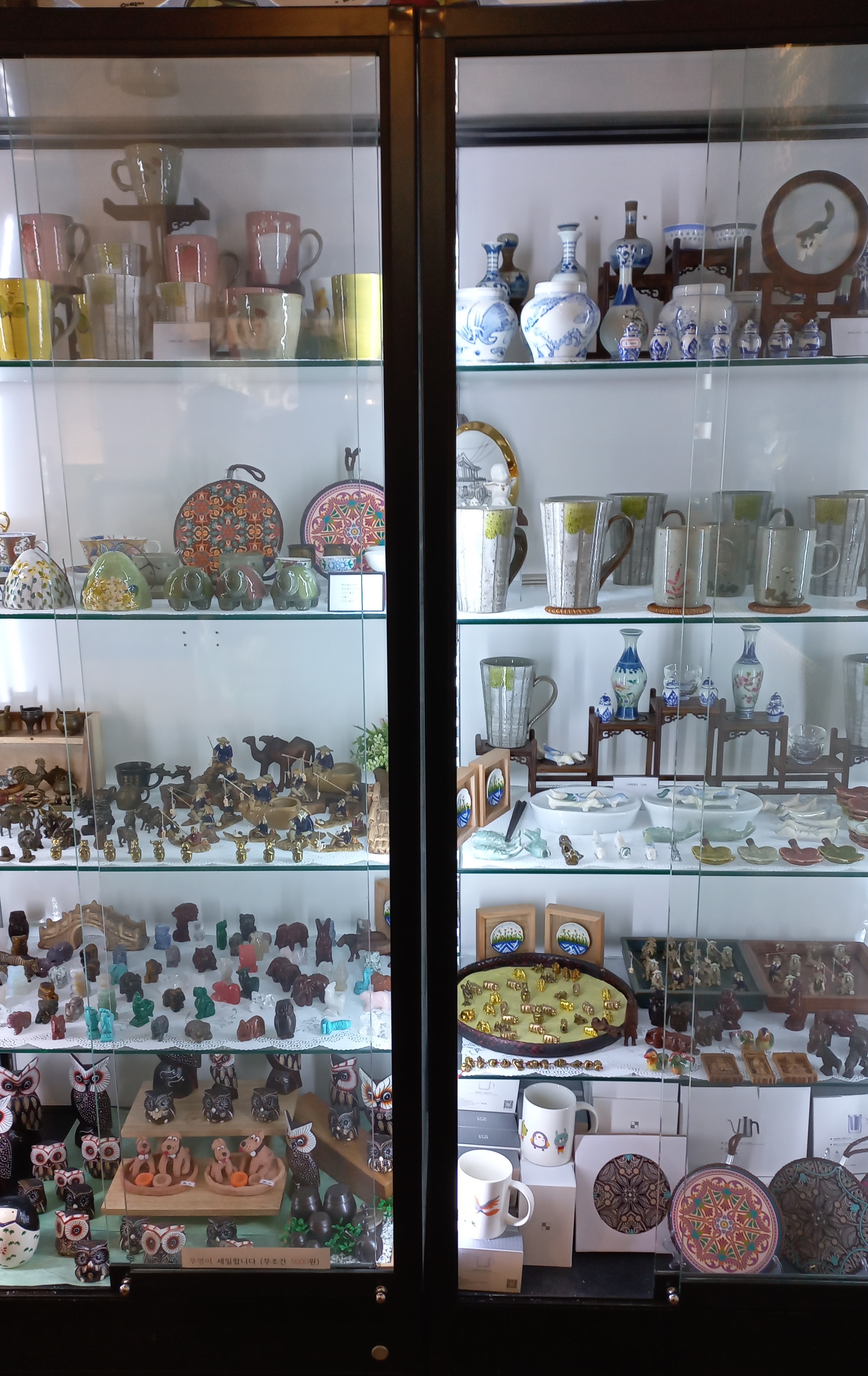 다양하게 만든 핸드페인팅 작품들은 수납장에 전시되어 있어서 구경할 수 있습니다.