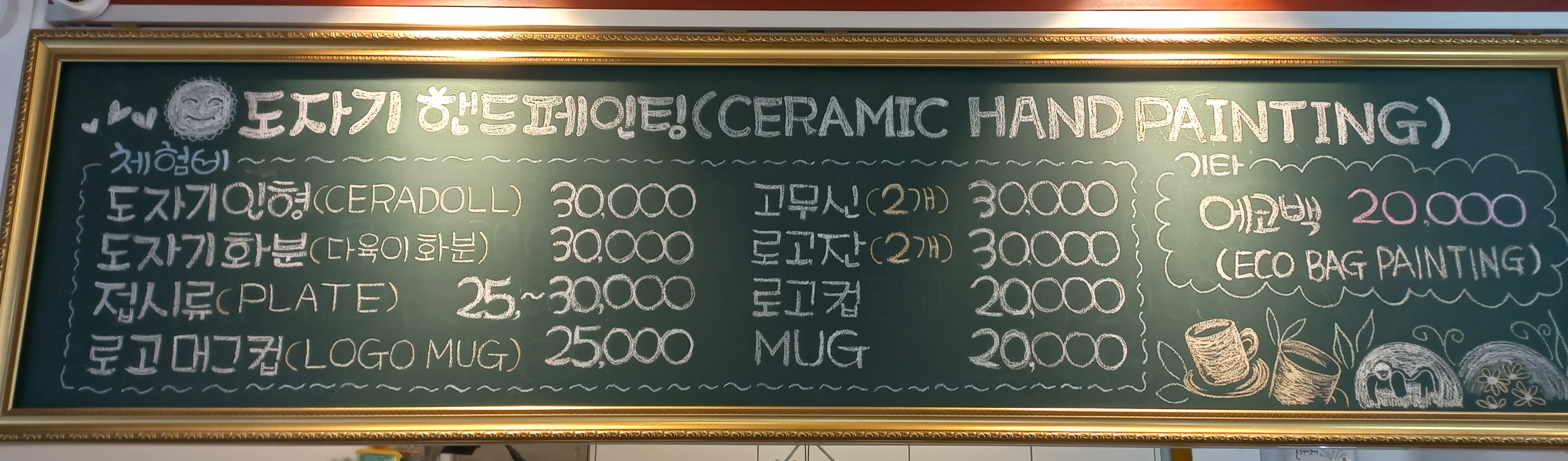 북악산을 바라보며 커피를 마실 수도 있고 도자기, 접시, 머그컵, 인형화분 등 생황용품에 직접 본인 만의 그림을 그려 가져 갈 수 있는 체험 공방카페입니다.