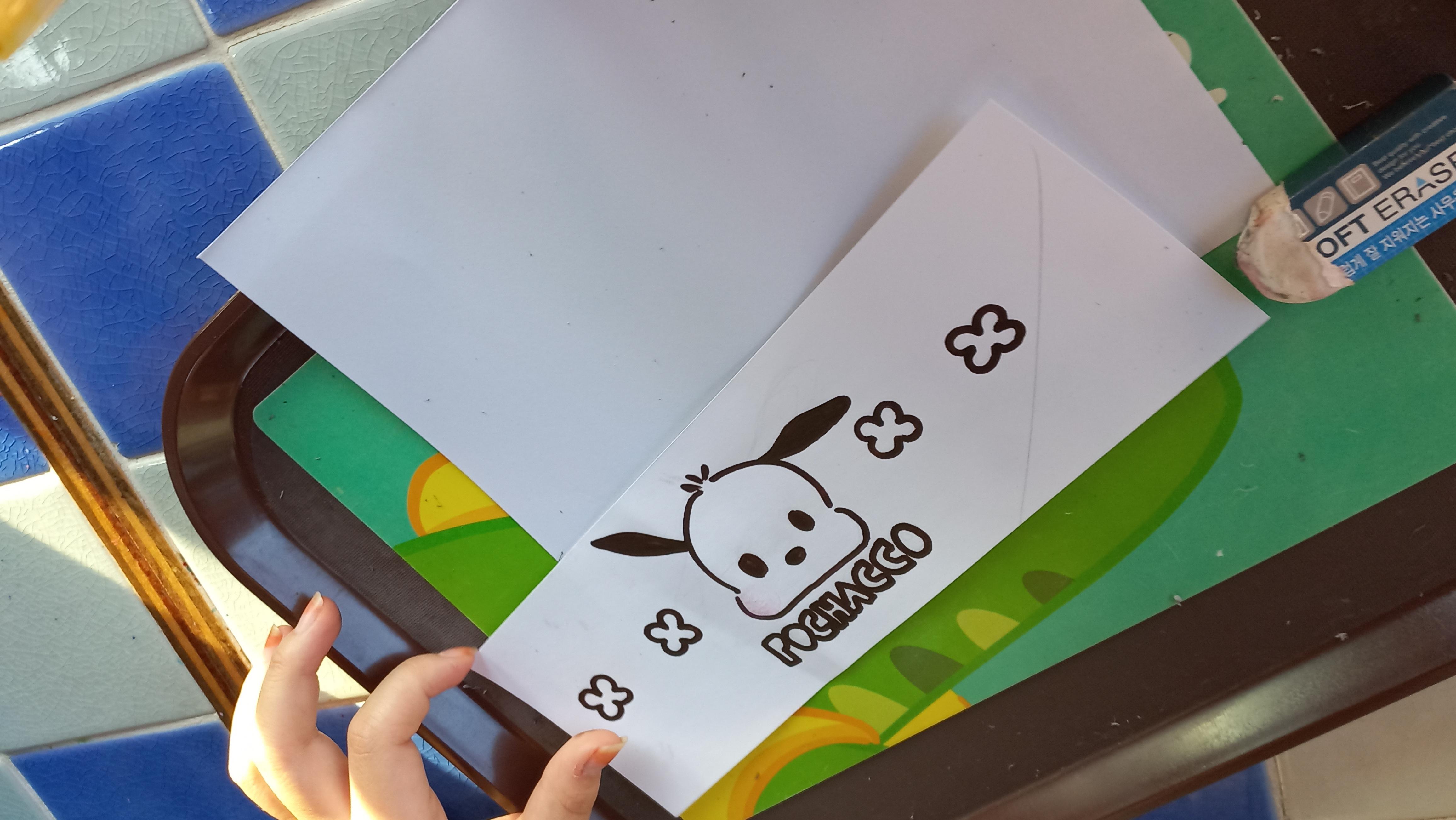 포차코(pochacco) 캐릭터를 그리고 있네요.