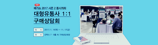 메가쇼 참가기업 350개 업체가 참여하고, 대형 유통사 100개사가 참여하여 국내 최대규모로 열린다고 합니다.