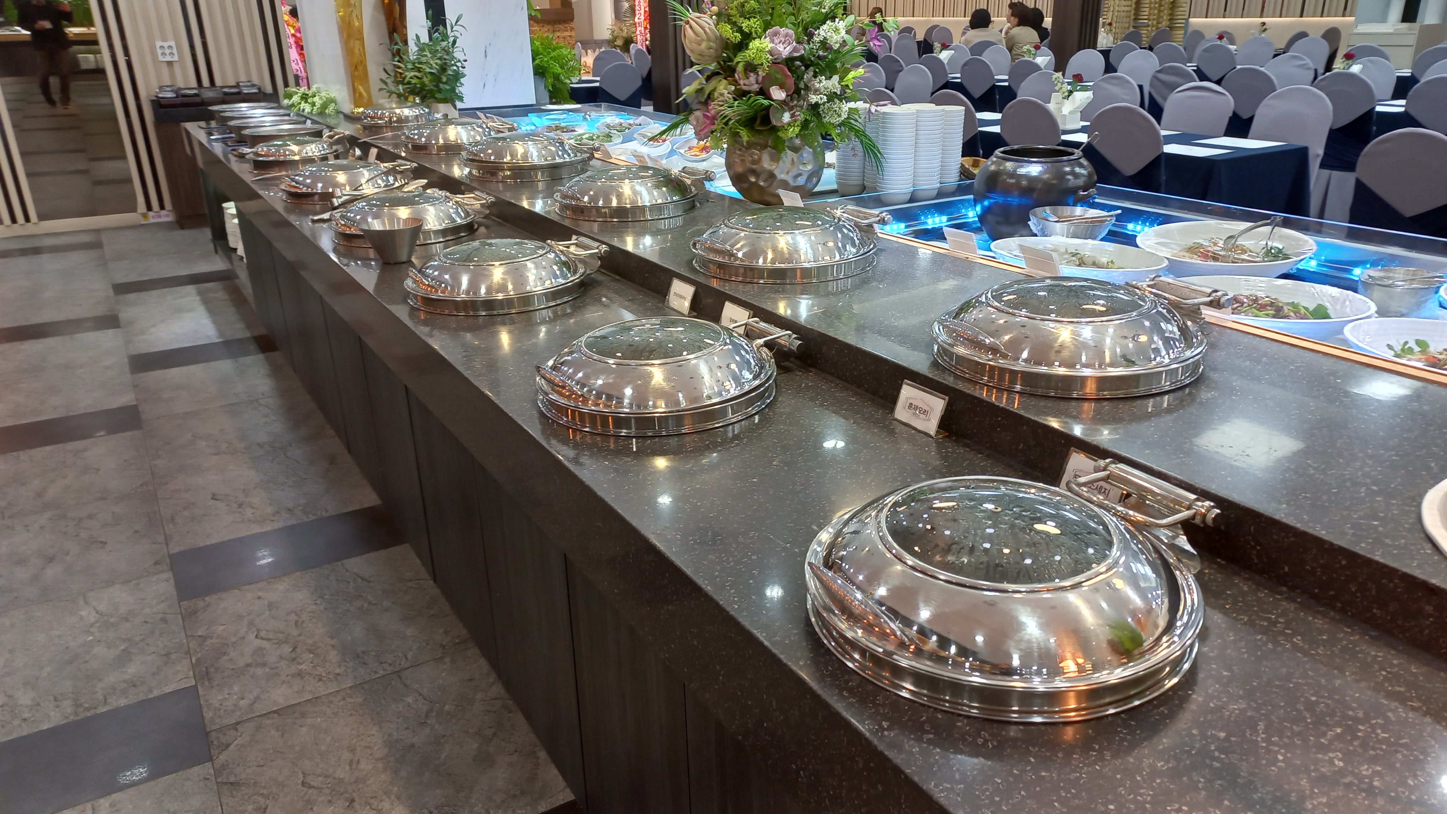 행사장 홀 옆의 뷔페 모습