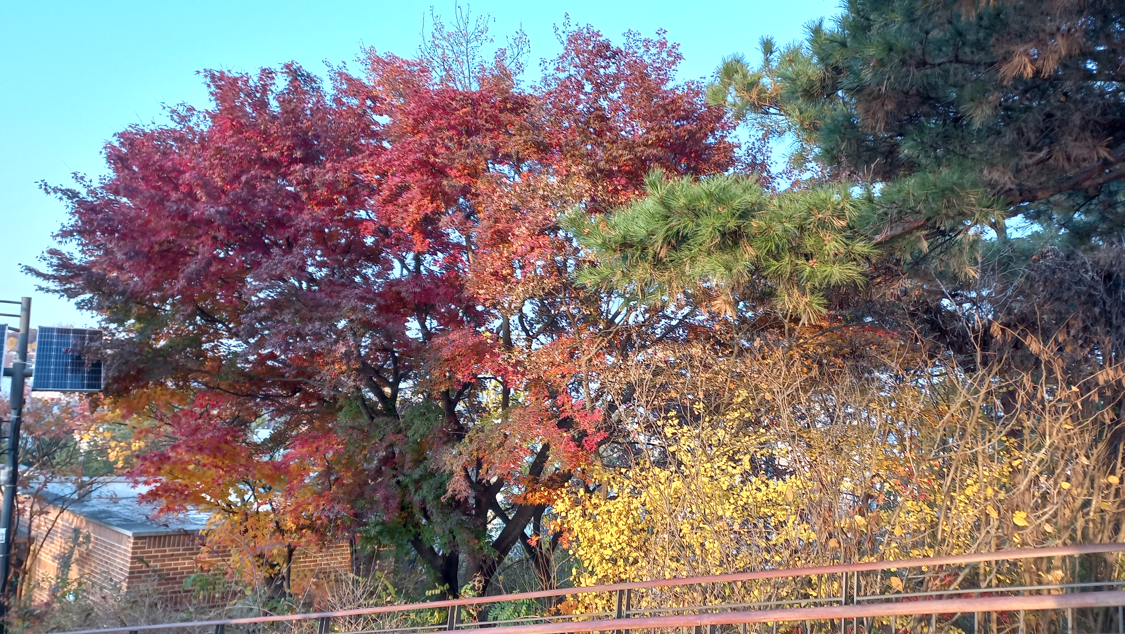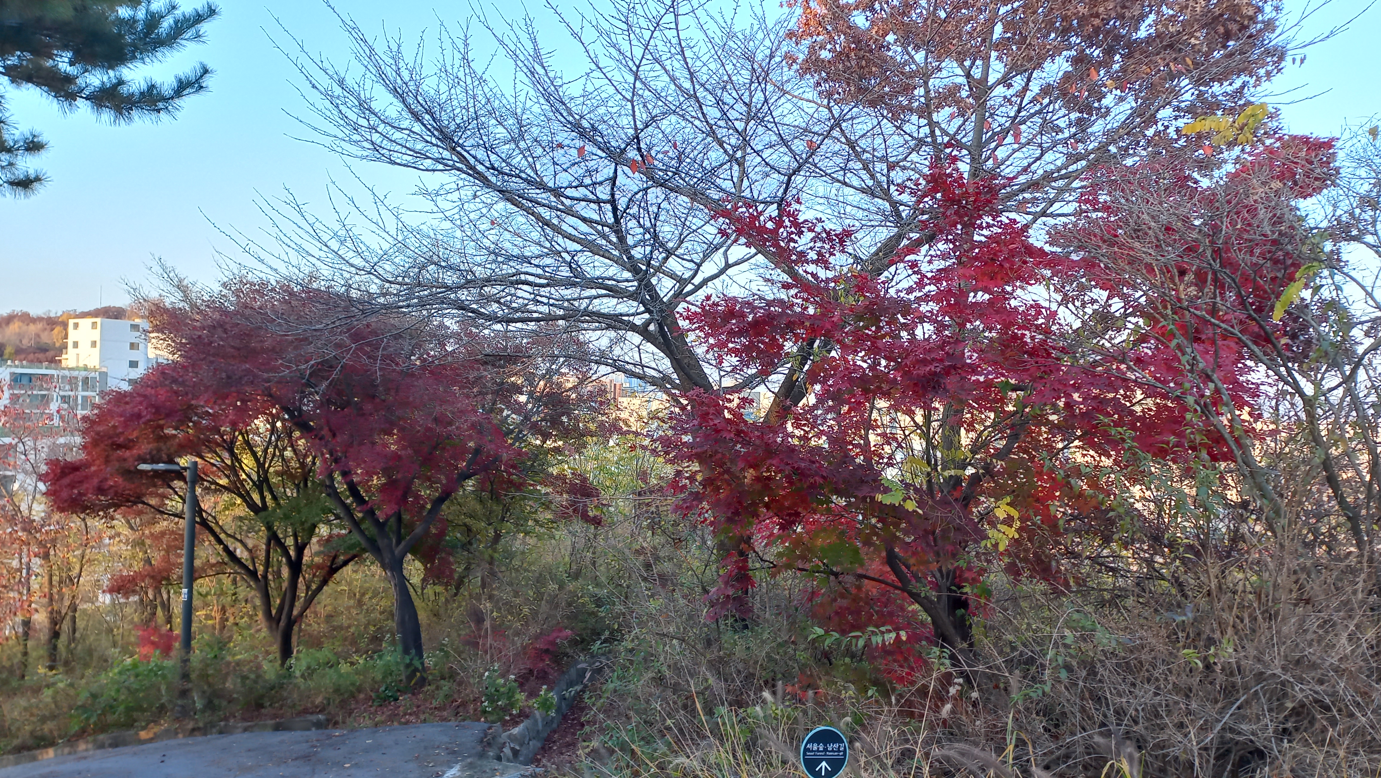 내려올 때에는 반대쪽으로 향했는데, 이쪽에 단풍나무 몇 그루가 자태를 뽐내고 있습니다.