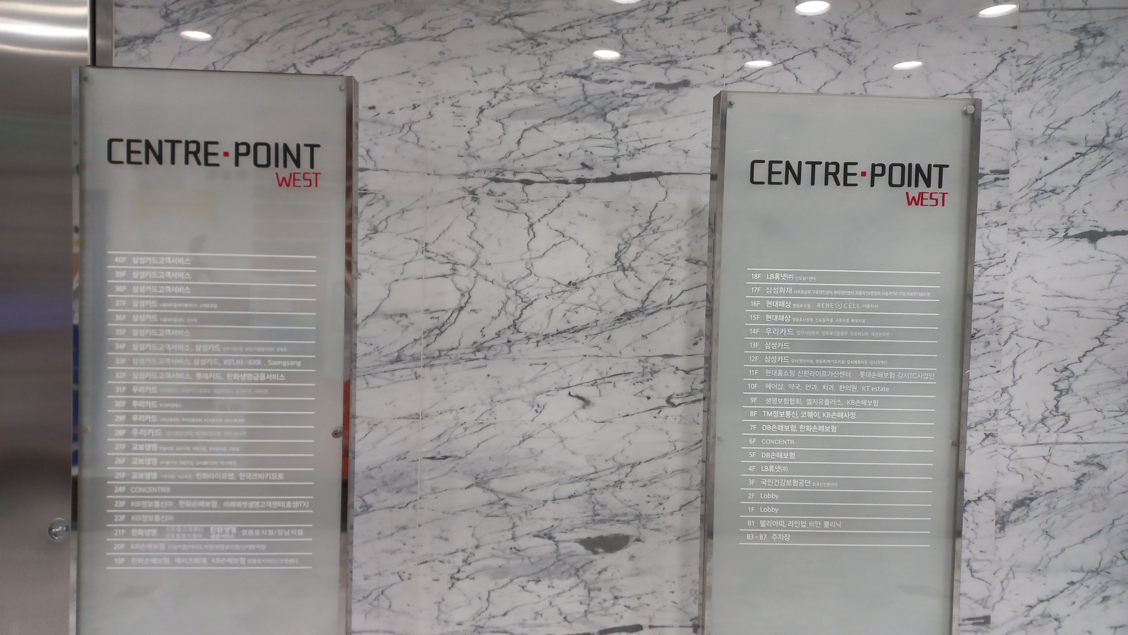 B3~B7층은 주차장, B1층은 푸드코트 등이 있고, 우리카드와 삼성카드, 롯데카드, 교보생명, KIS정보통신, KB손해보험, 한화손해보험, 메리츠화재, 국민건강보험공단, 현대해상, 삼성화재 LB휴넷 등이 입주해 있습니다.