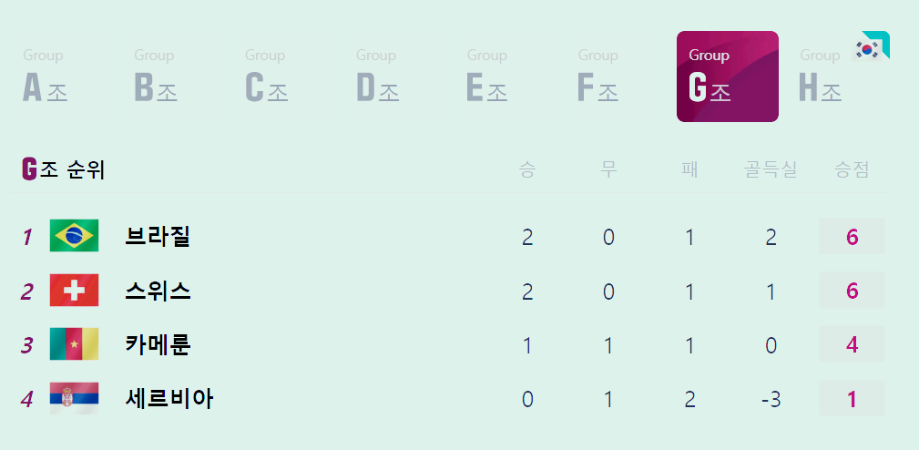 월드컵 G조 조별순위