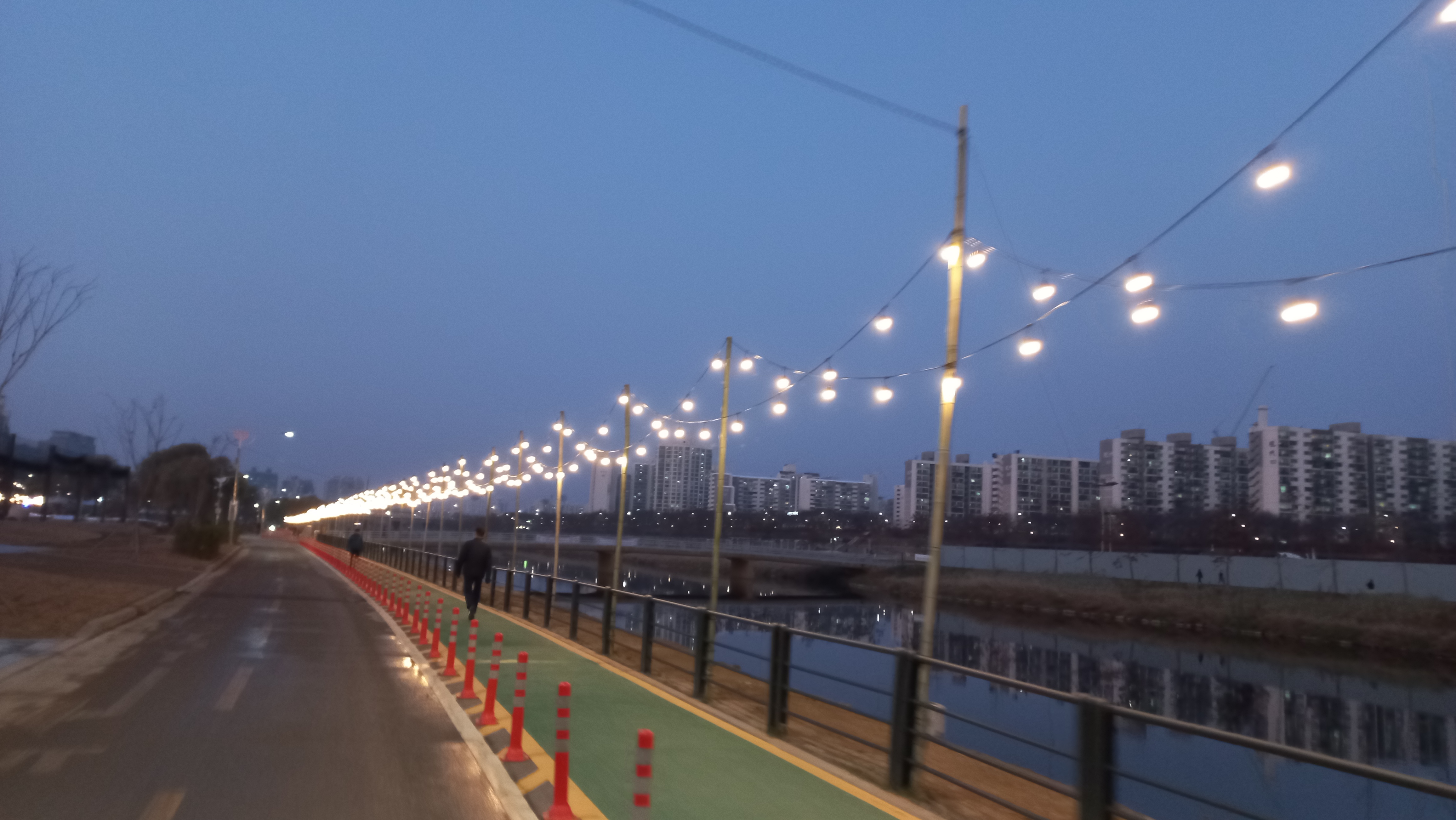 늦은 오후 안양천에 자전거를 타러 갔다가 돌아오는 길에 어두워졌는데, 신정동 안양천 생태공원 일대에 환한 조명이 들어와서 잠시 구경했습니다.