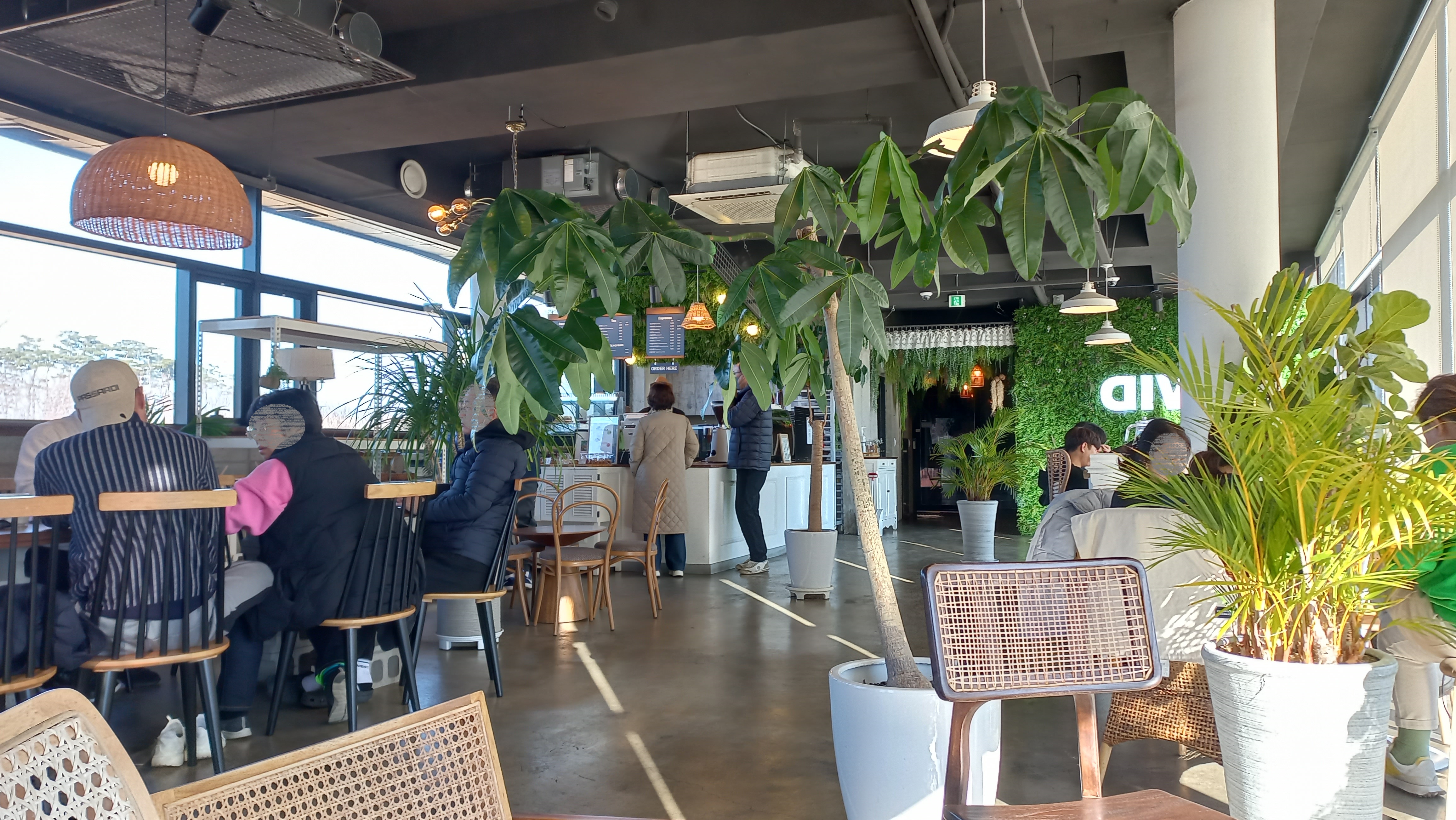 청라호수공원 남쪽엔 플라워뮤직아일랜드의 야외음악당에 있는 카페 리본이 있고, 북쪽엔 청파나루아 청라루 사이에 카페 다이브가 있습니다.