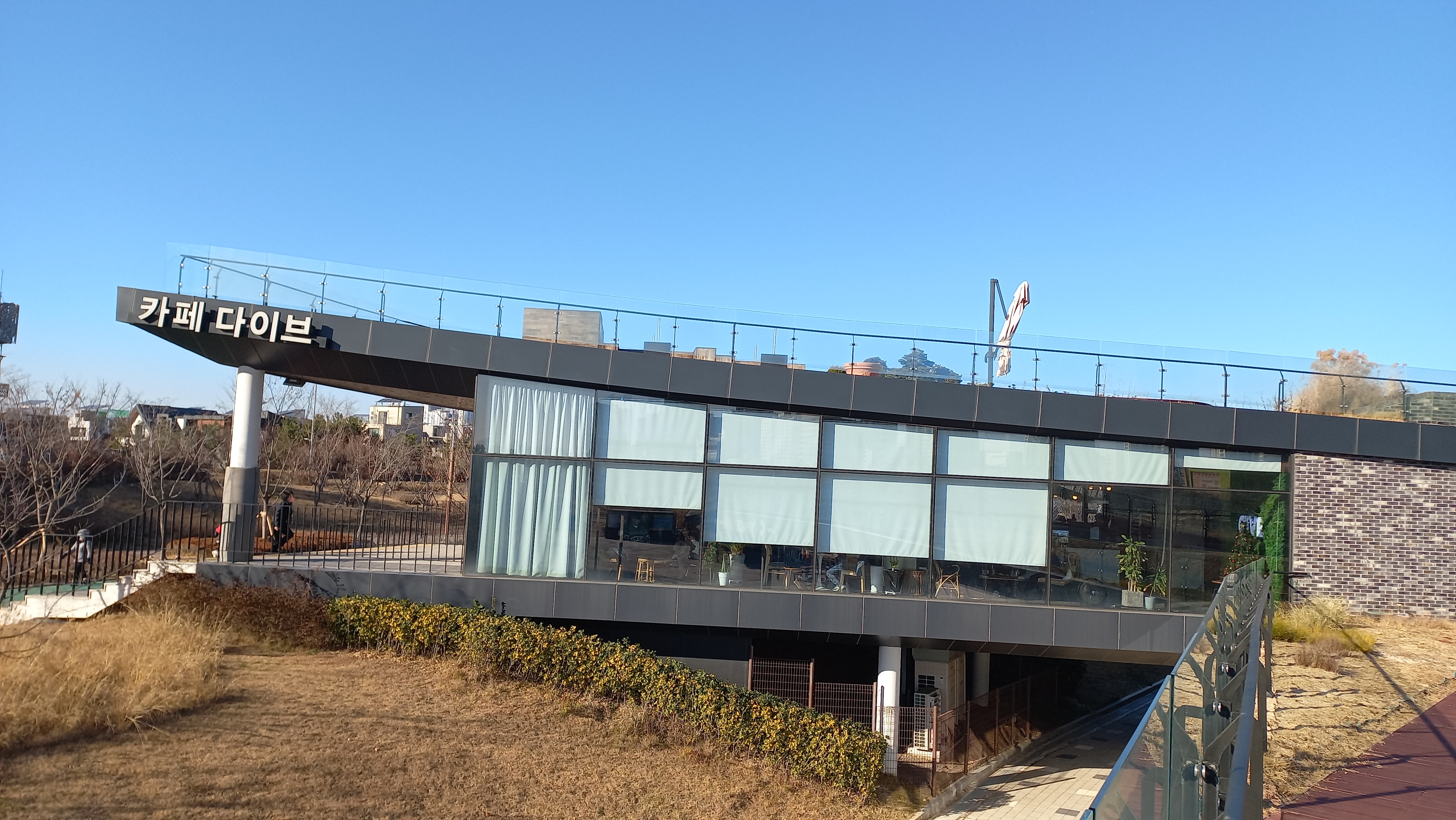 이중에서 청라호수공원 전망을 무척 아름답게 볼 수 있는 곳은 카페 다이브입니다.