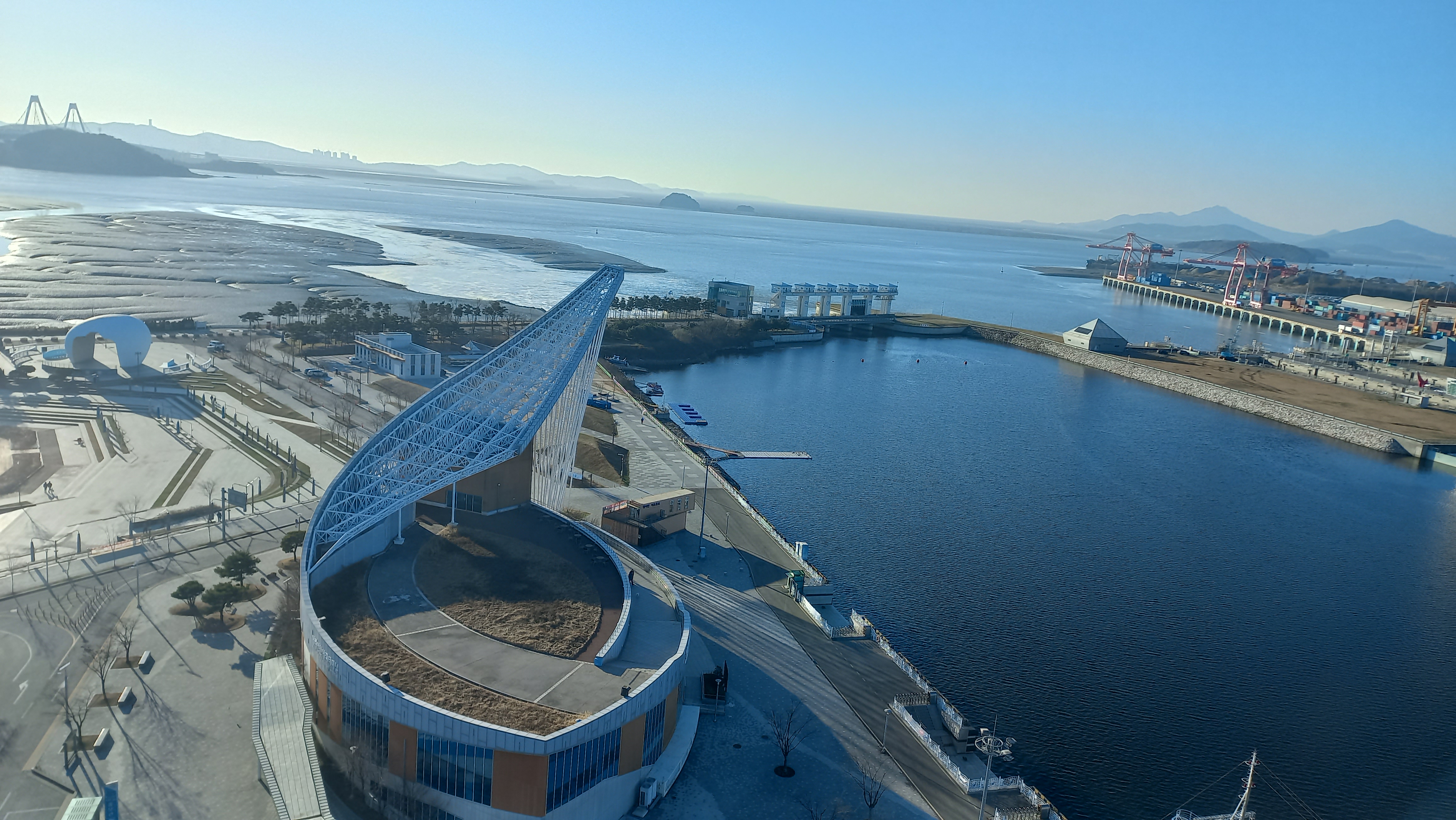 경인항 컨테이너 부두와 아라 서해갑문 모습