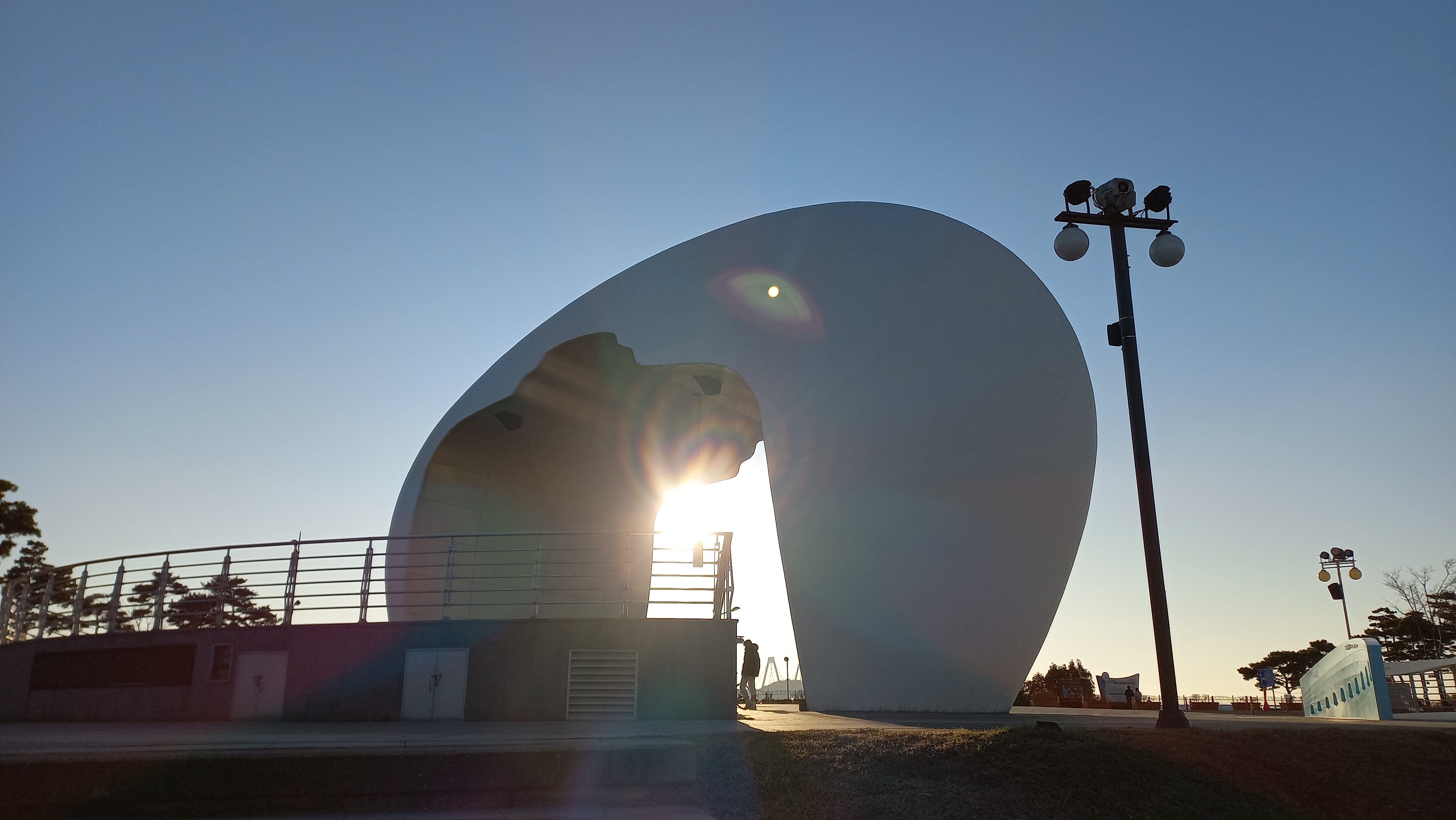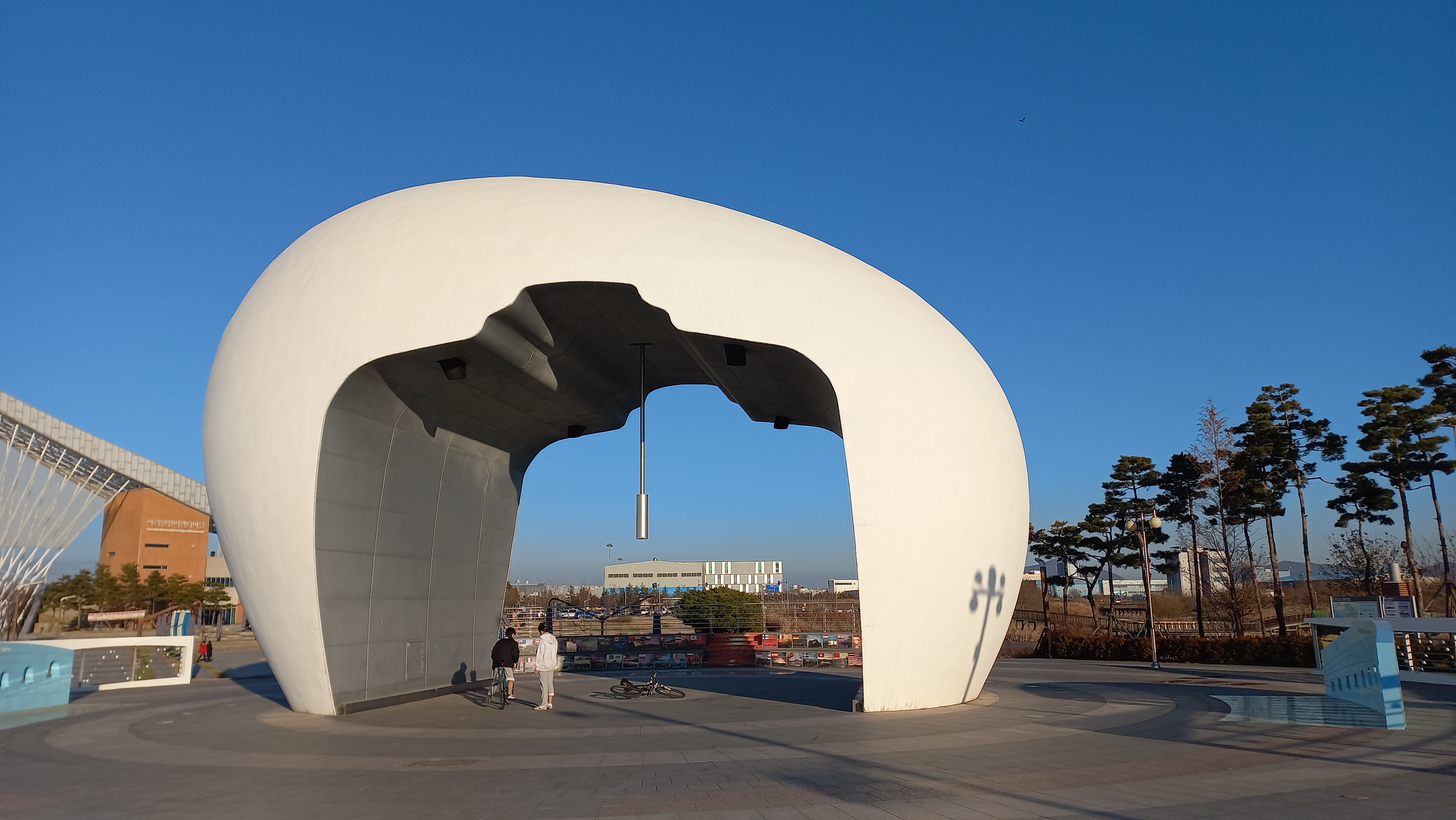 정서진 노을종은 정서진 광장과 선착장이 혼재된 넓은 공간에 노을을 상징하는 조형물로 만들어둔 것입니다.
