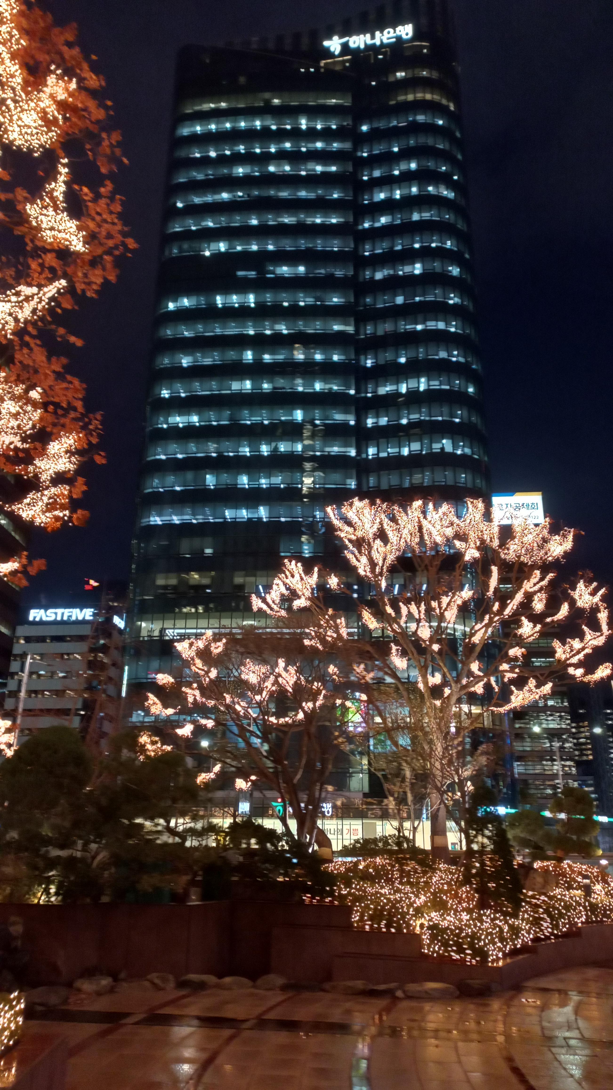 나무 조명과 하나은행 본점