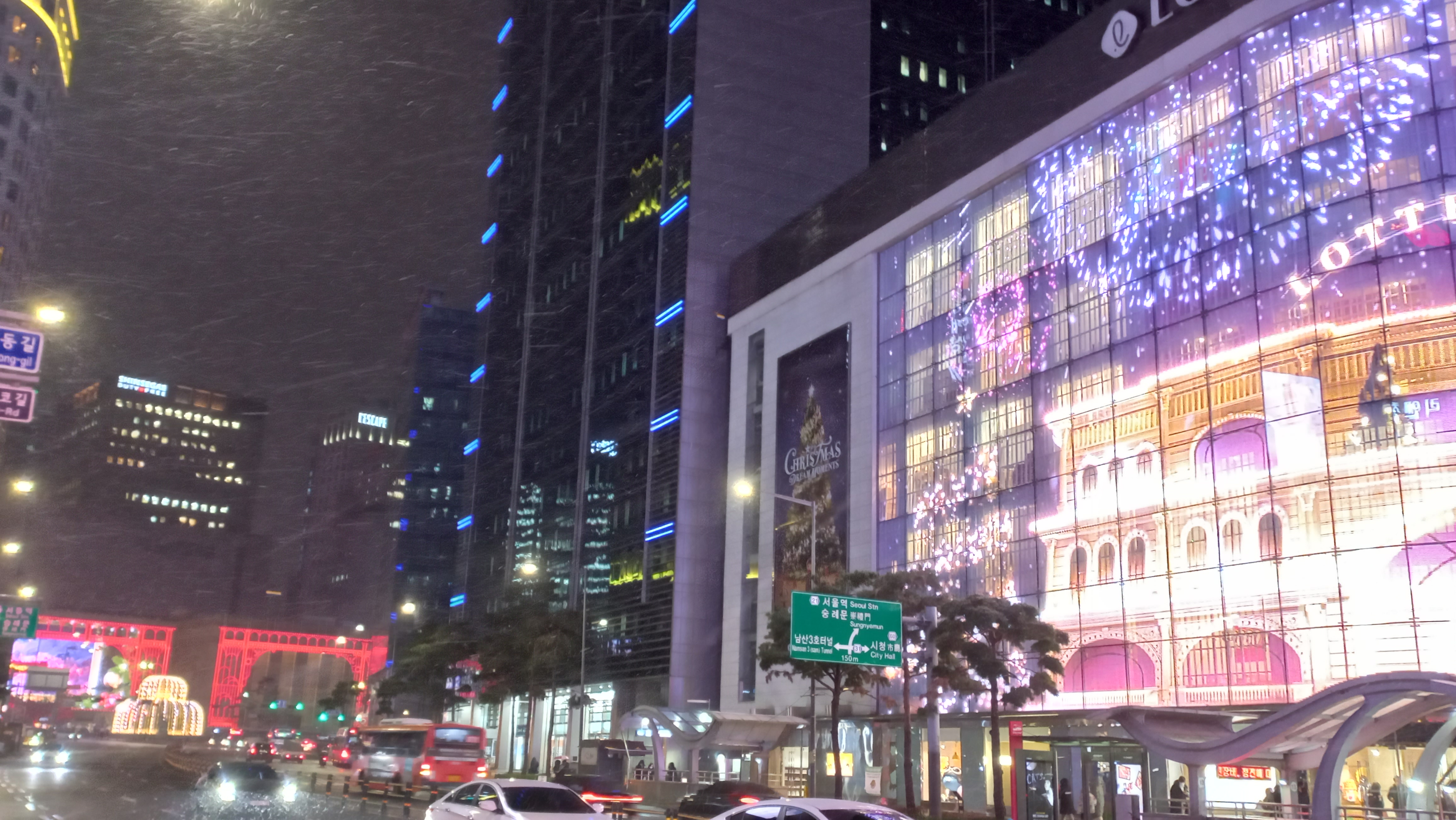 롯데백화점 위쪽으로 신세계백화점 본점 미디어 파사드도 보입니다.