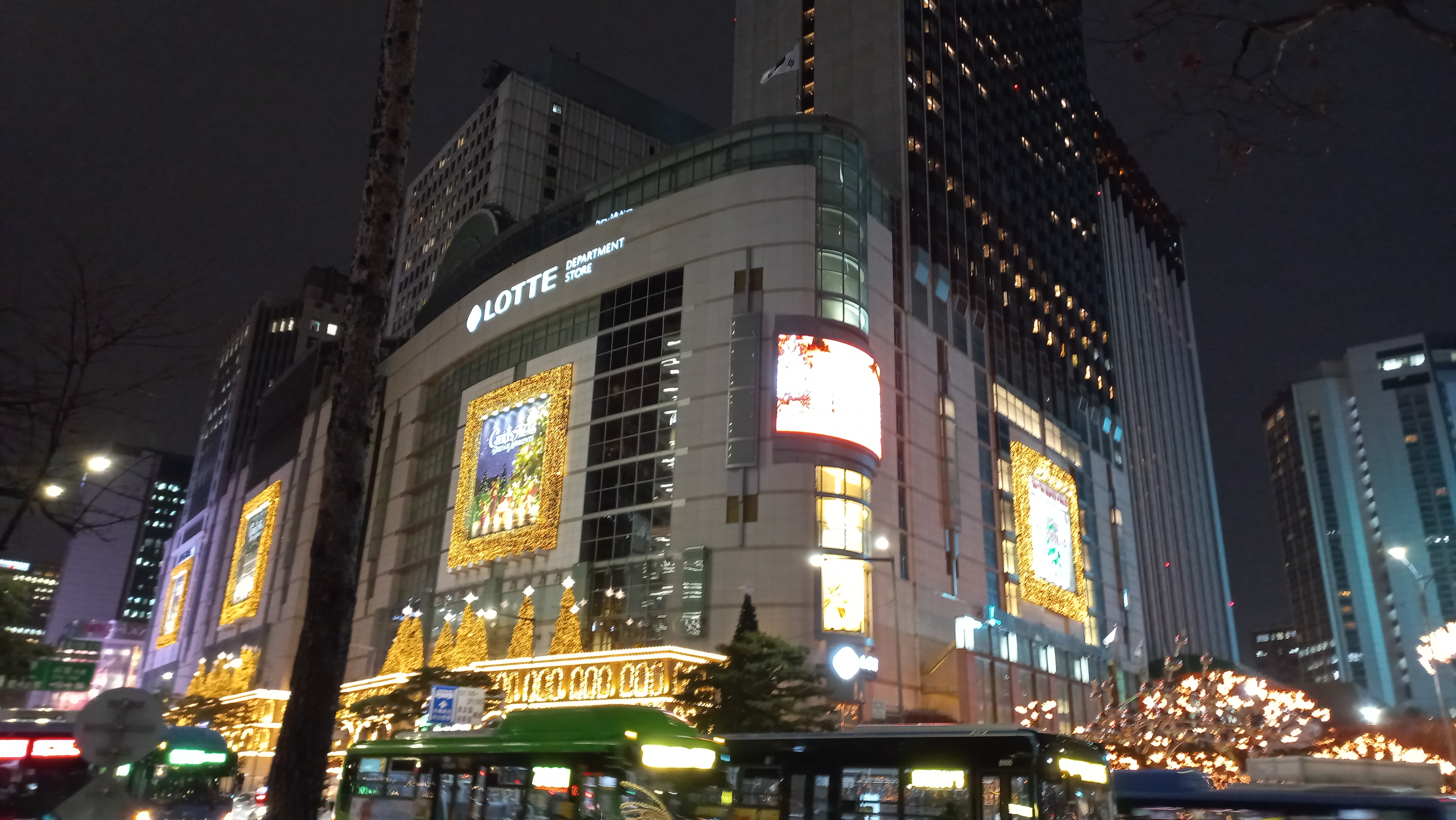 명동에 있는 롯데백화점 본점에서는 외벽 100m 이상의 미디어 파사드(롯데영플라자)를 3층 높이로 만들었고, 롯데백화점 건물에는 아름다운 크리스마스 장식으로 가는 이들의 발걸음을 잡게 만들고 있습니다.