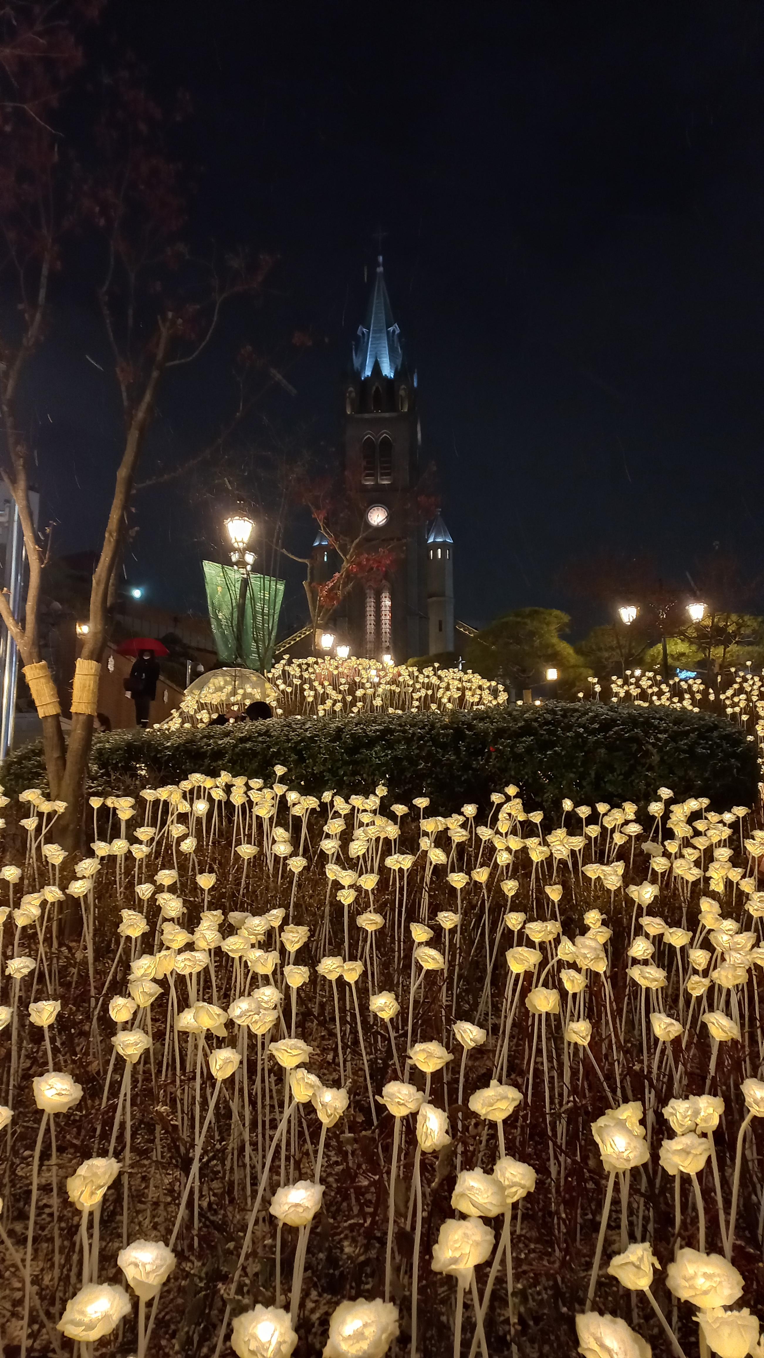 명동성당 들머리 앞에 조성된 LED 장미정원