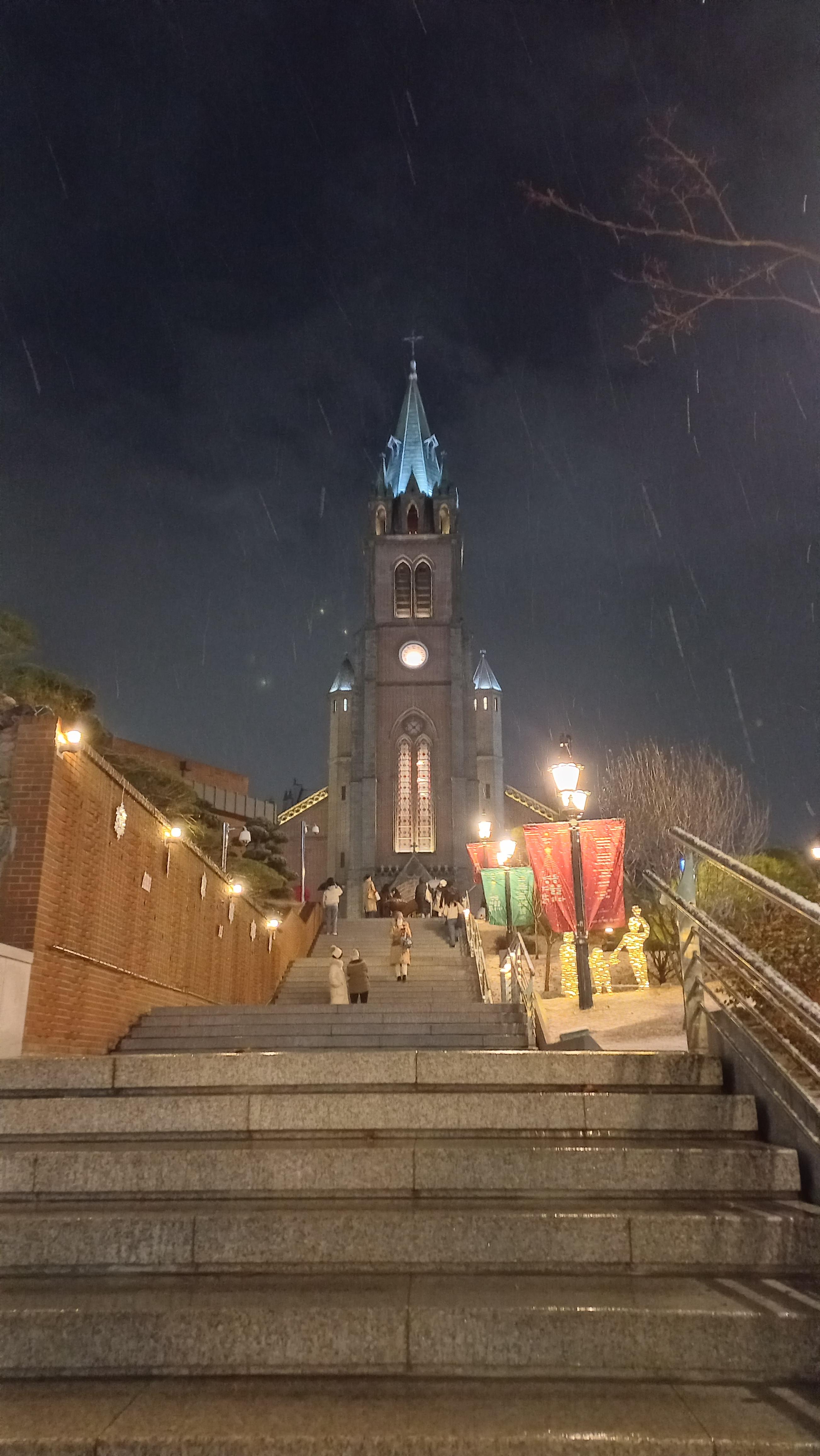 연말 크리스마스 분위기가 느껴지는 명동성당의 야경을 담았습니다.