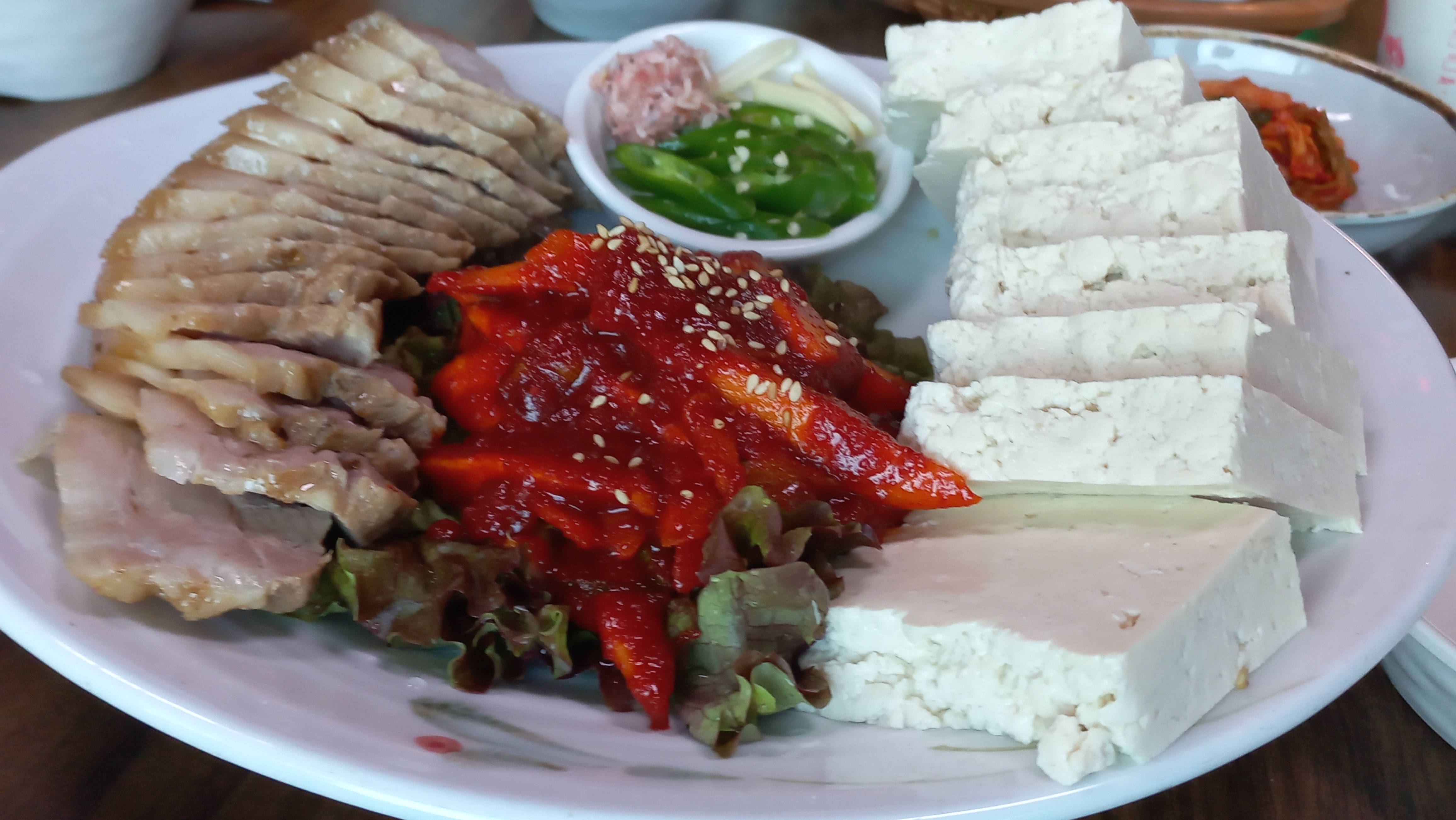 돼지수육과 더덕무침 그리고 장단콩 두부가 나오는데, 가격 대비 양은 그렇게 많지는 않습니다.