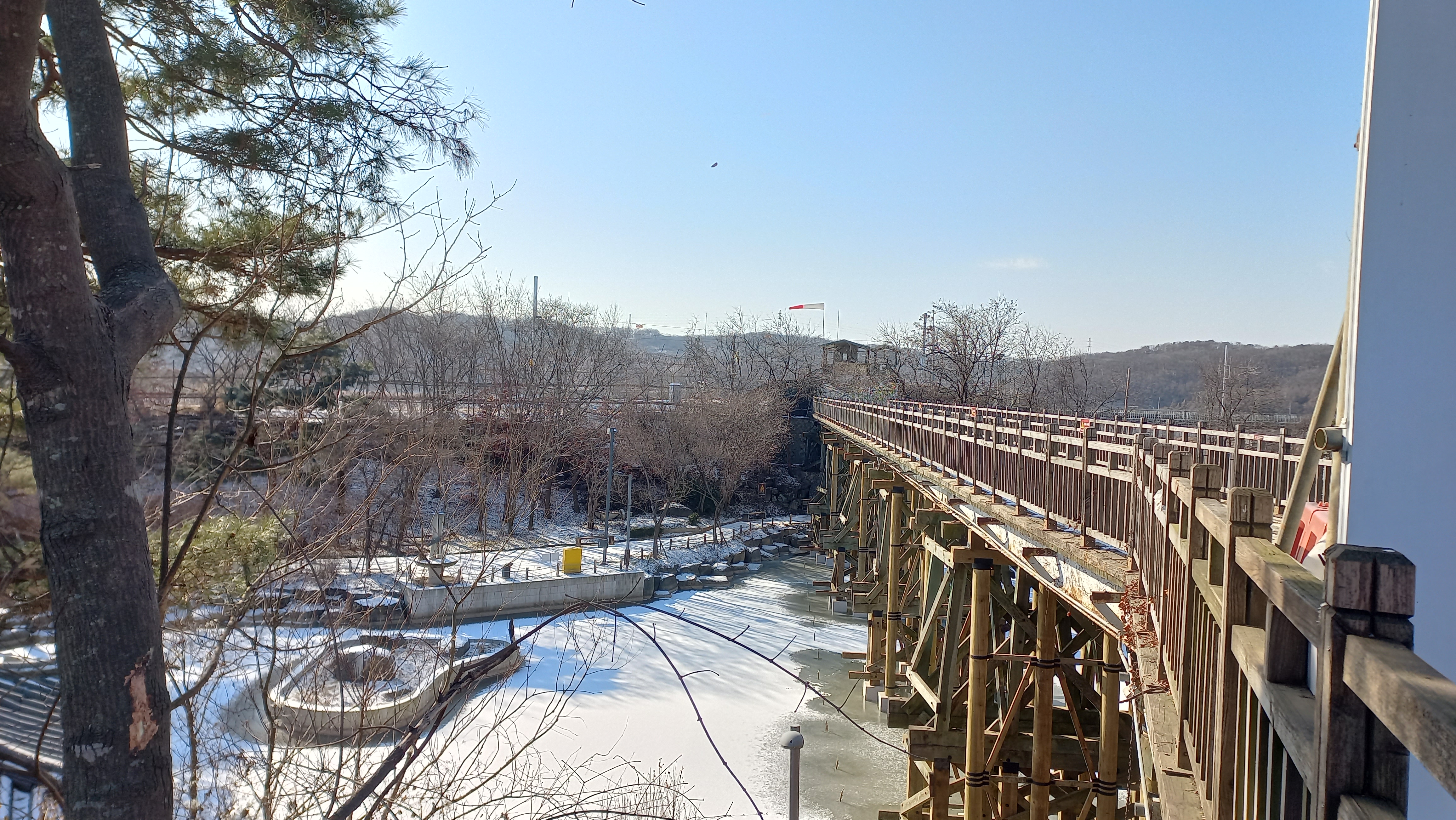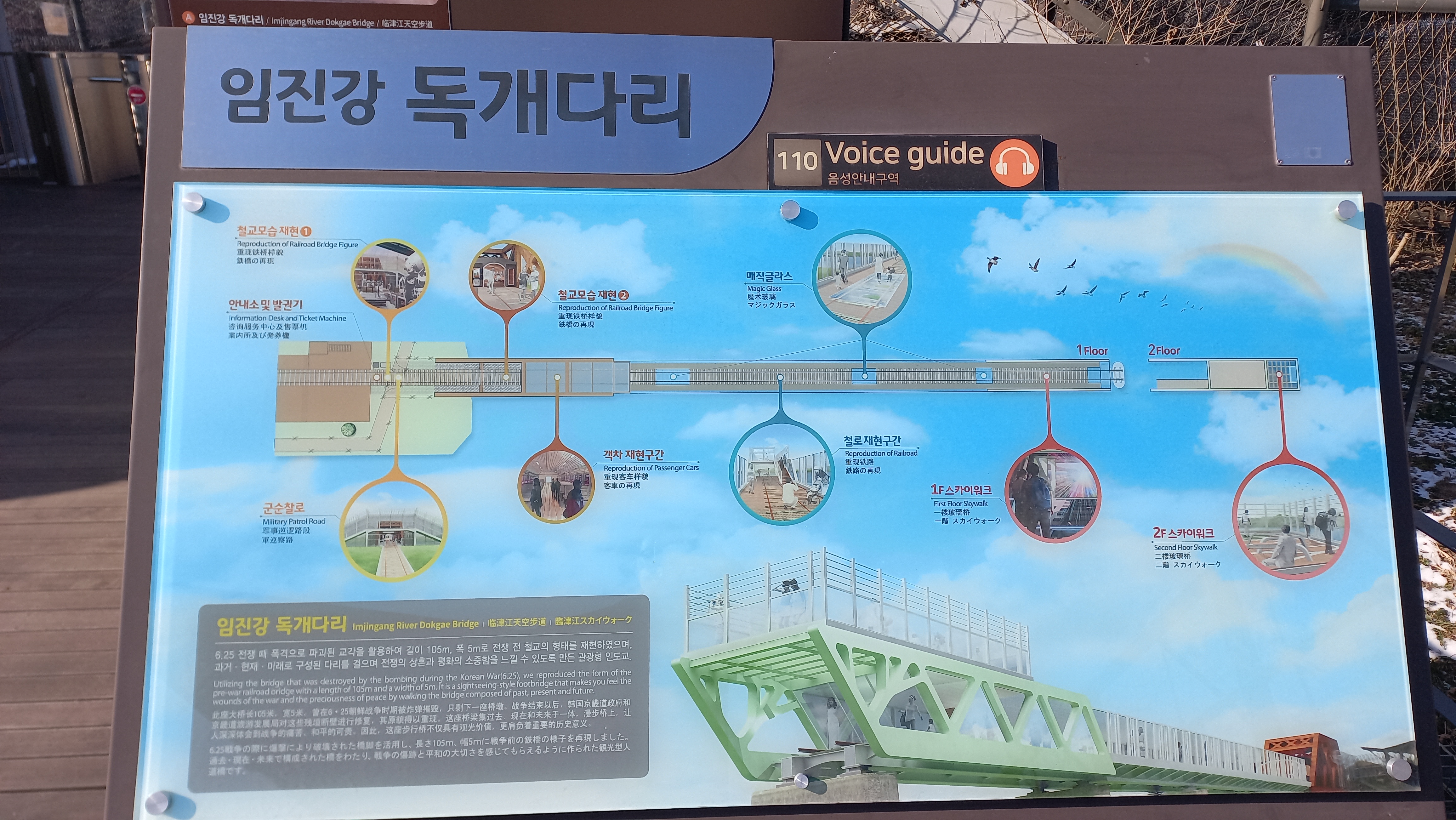 임진강 독개다리는 한국전쟁 당시에 다니던 경의선 철교(길이 105m, 폭 5m)를 재현해 놓은 곳입니다.