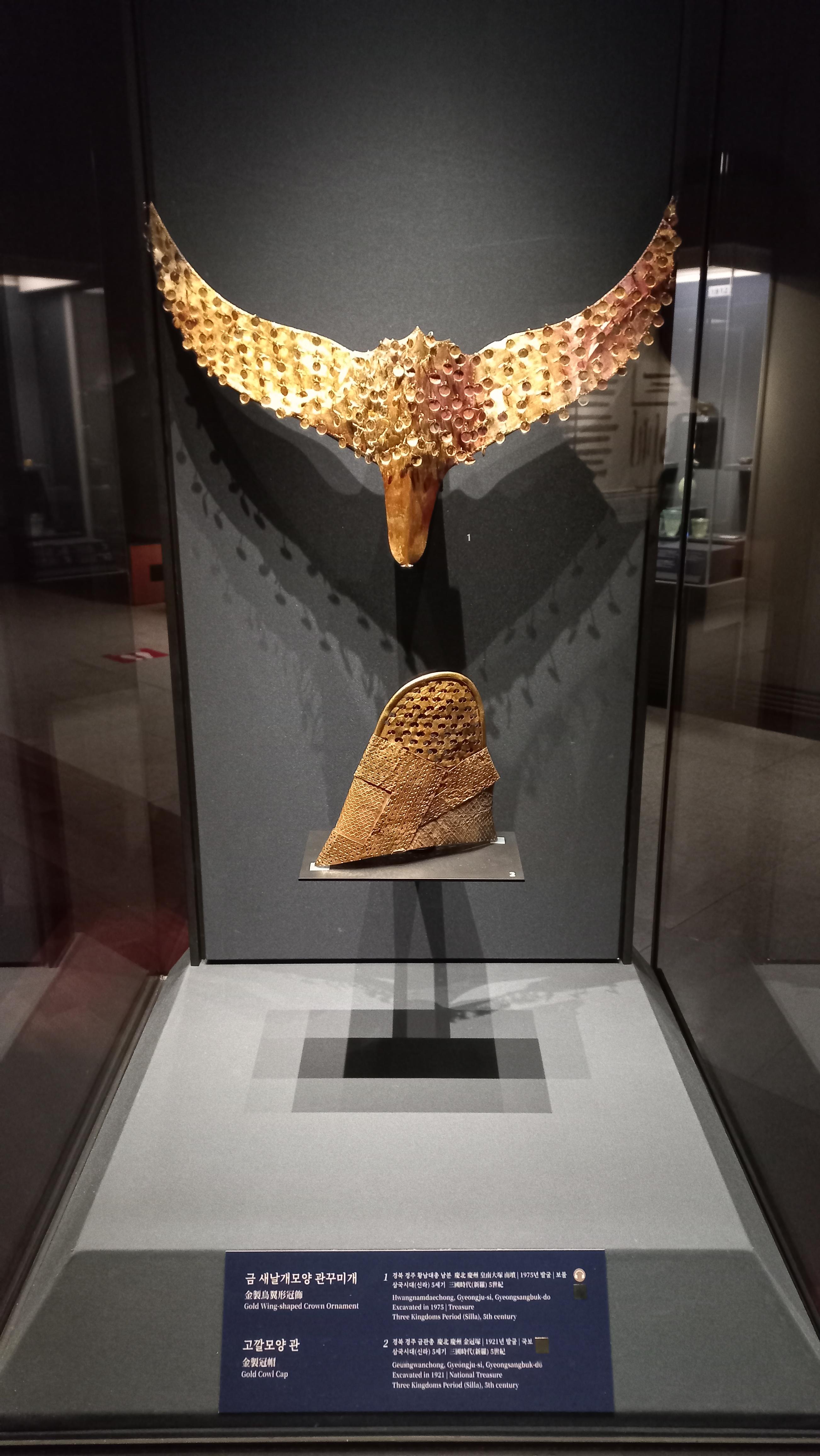 신라시대 금 새날개모양 관꾸미개와 고깔모양 관