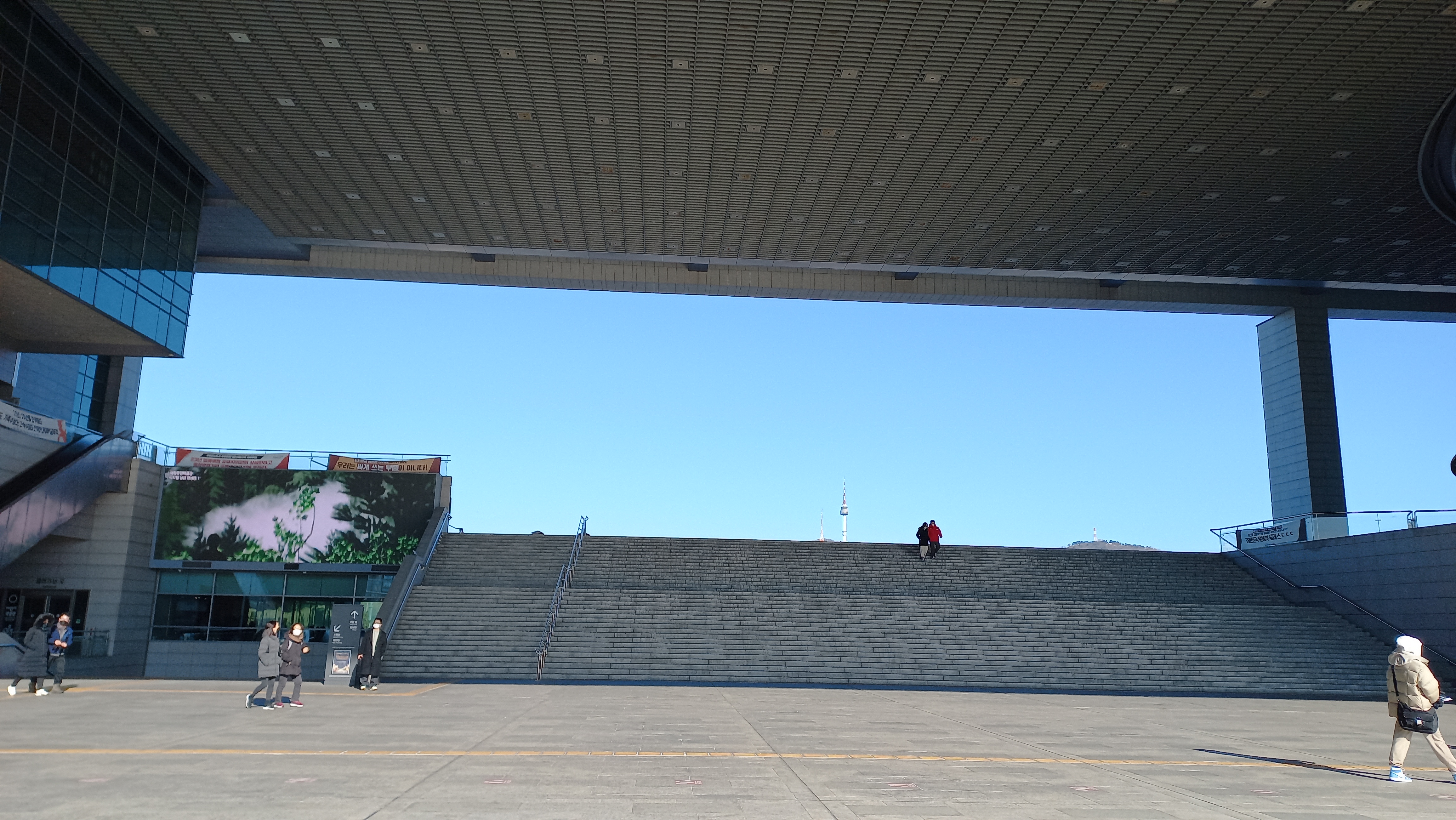 반대편 야외 로비로 올라가면 용산 일대와 남산서울타워가 눈에 들어옵니다.