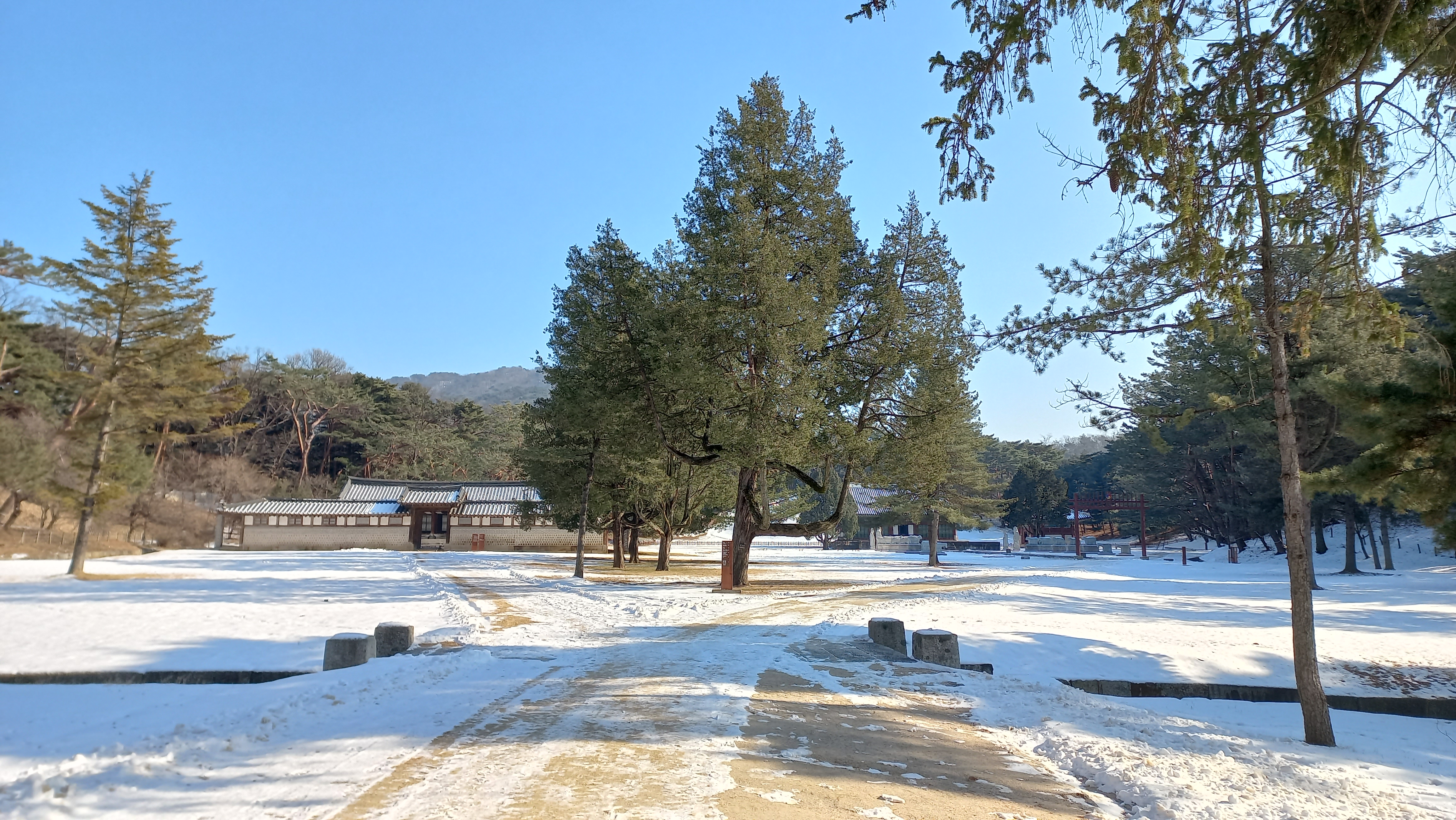 눈이 다른 지역은 거의 녹았는데, 홍유릉은 산에 있다 보니 아직 사인 눈이 그대로인 상태입니다.
