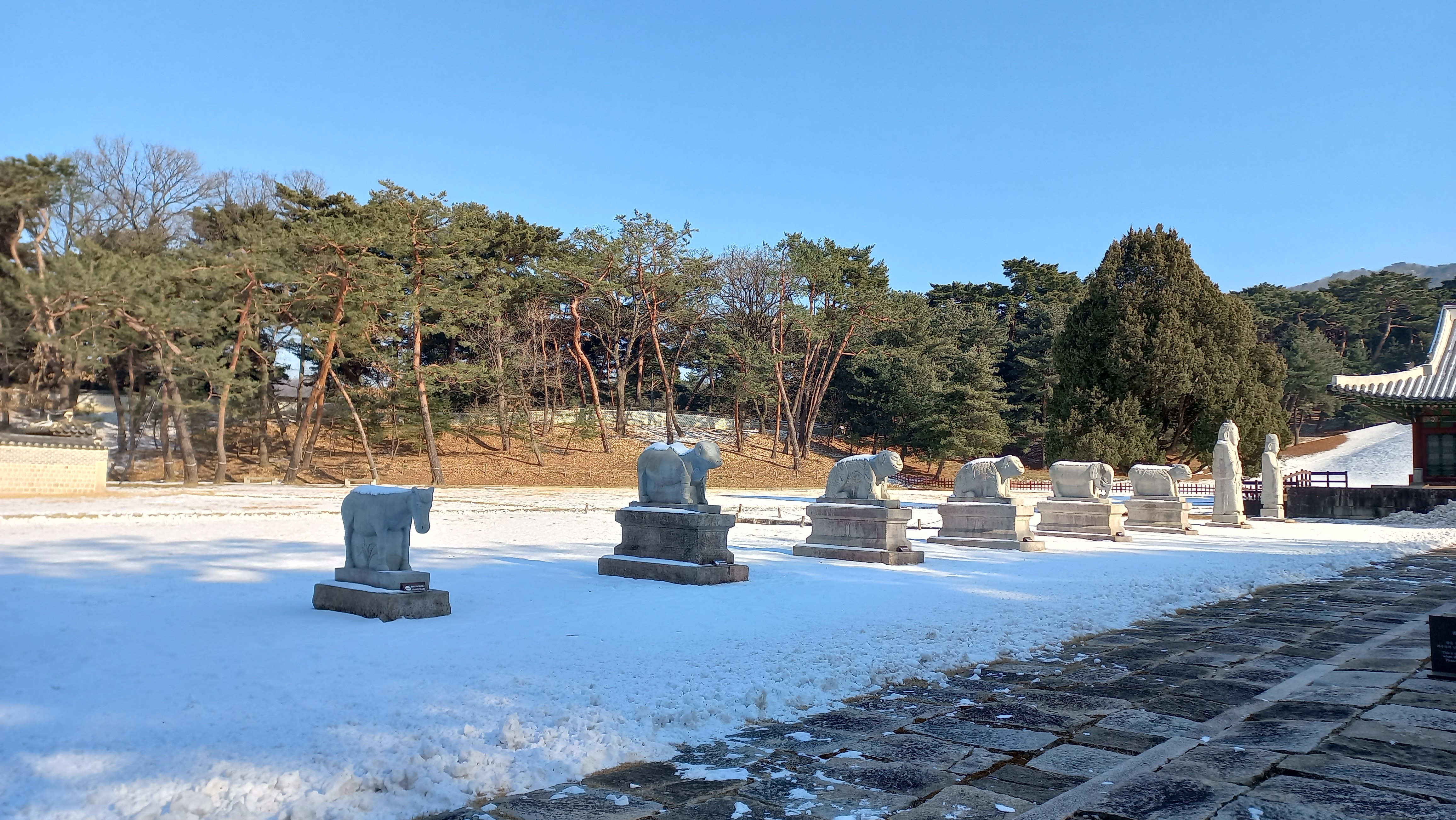 침전 앞의 문무인석과 동물상