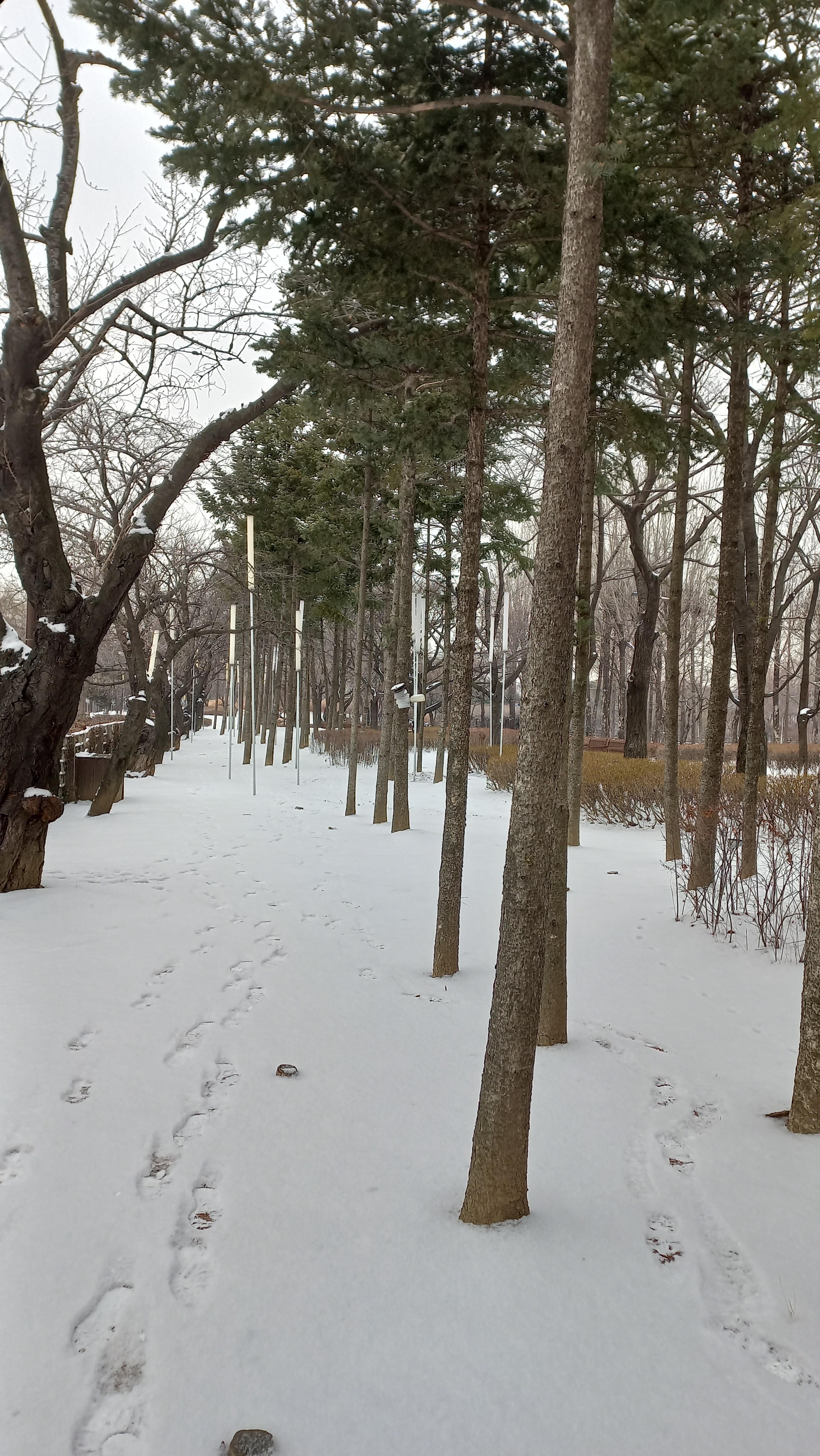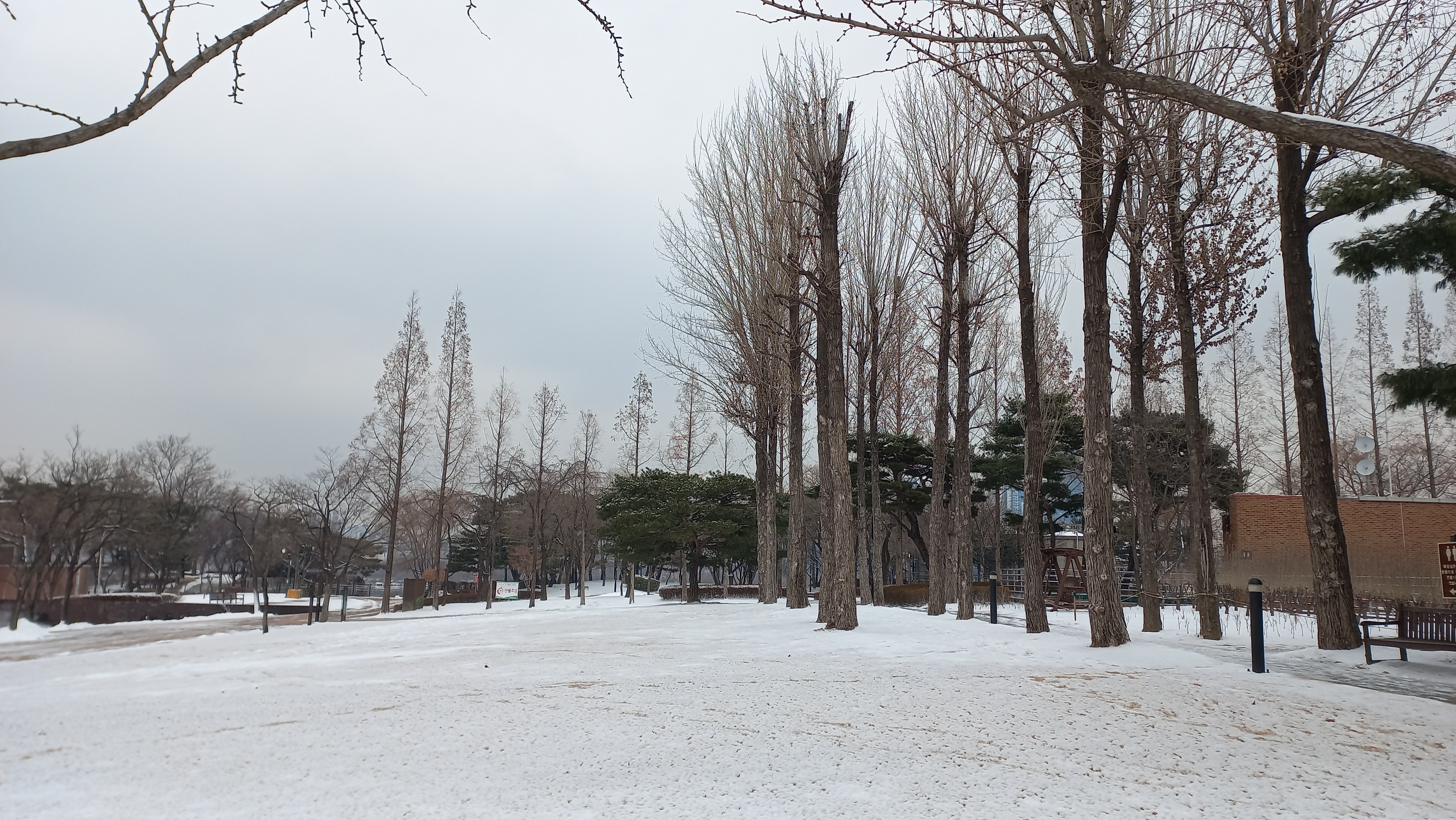 며칠 동안 이어지던 한파가 이어지는 가운데 내린 눈은 그대로 녹지 않고 하얀 세상으로 바꾸었네요.