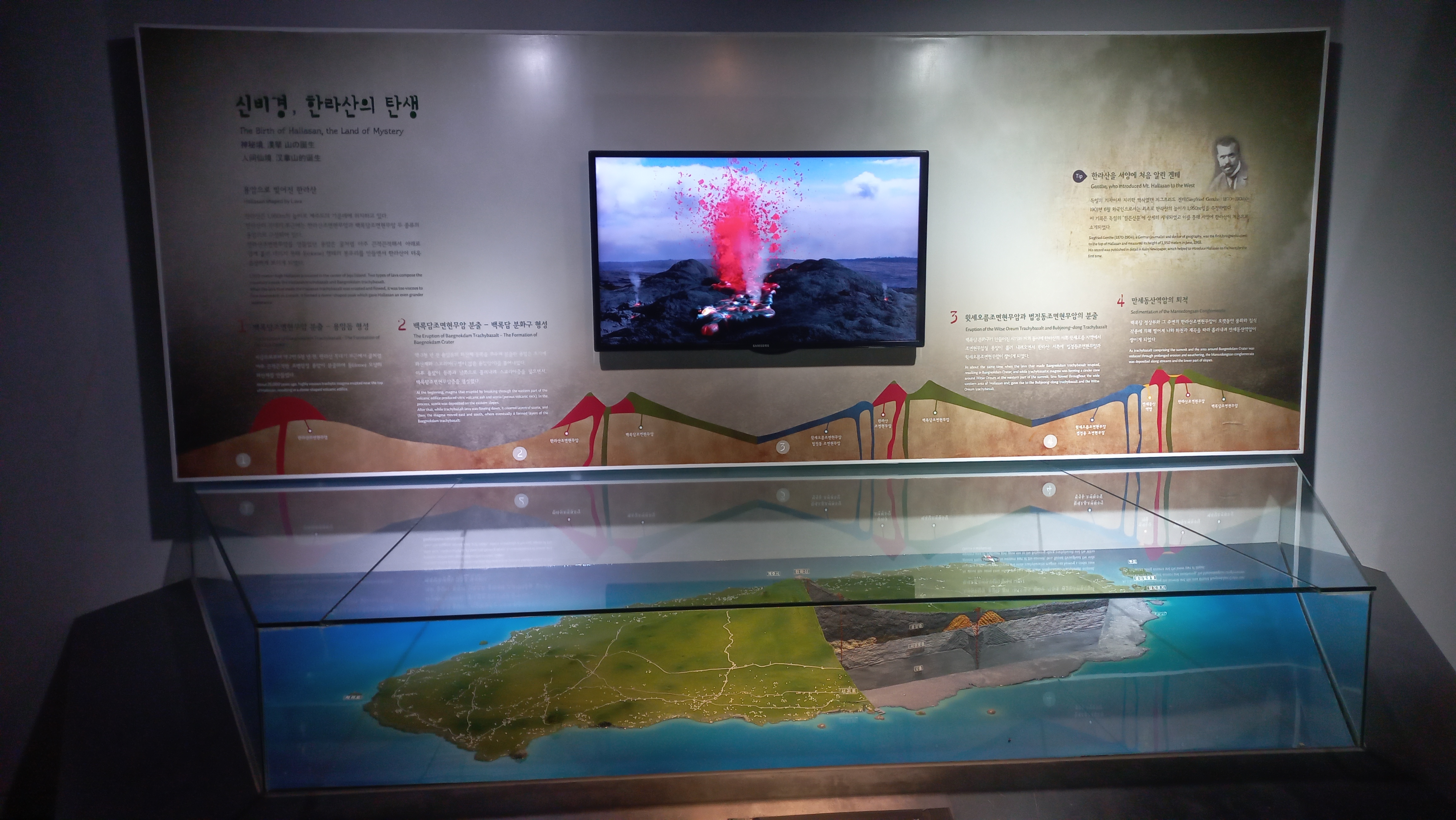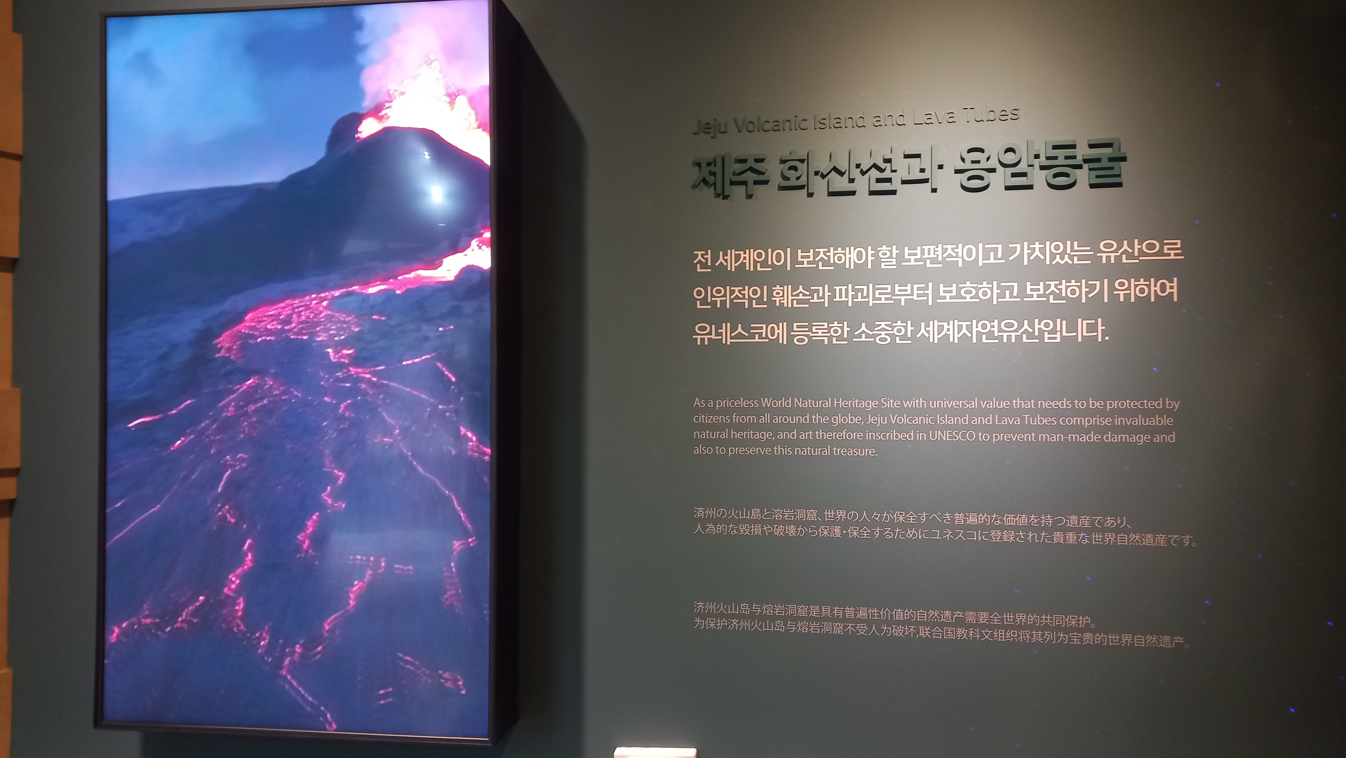 제주도 세계자연유산이 소개되고 제주의 탄생과정을 3D로 시뮬레이션하는 영상이 터치인터랙티브 월을 통해 제공하고 있습니다.