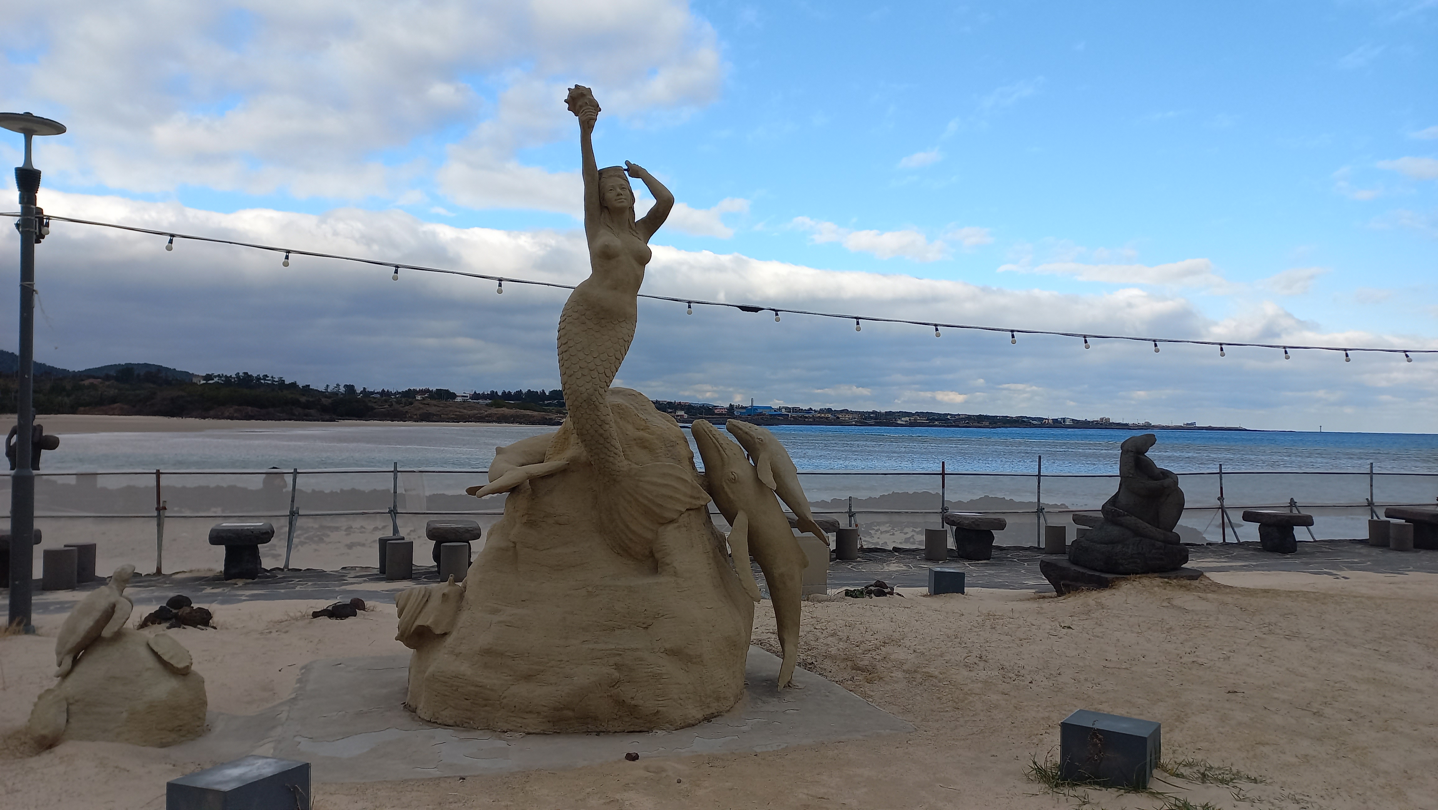 차가워진 겨울날씨의 표선해수욕장 모습 구경해 보세요.