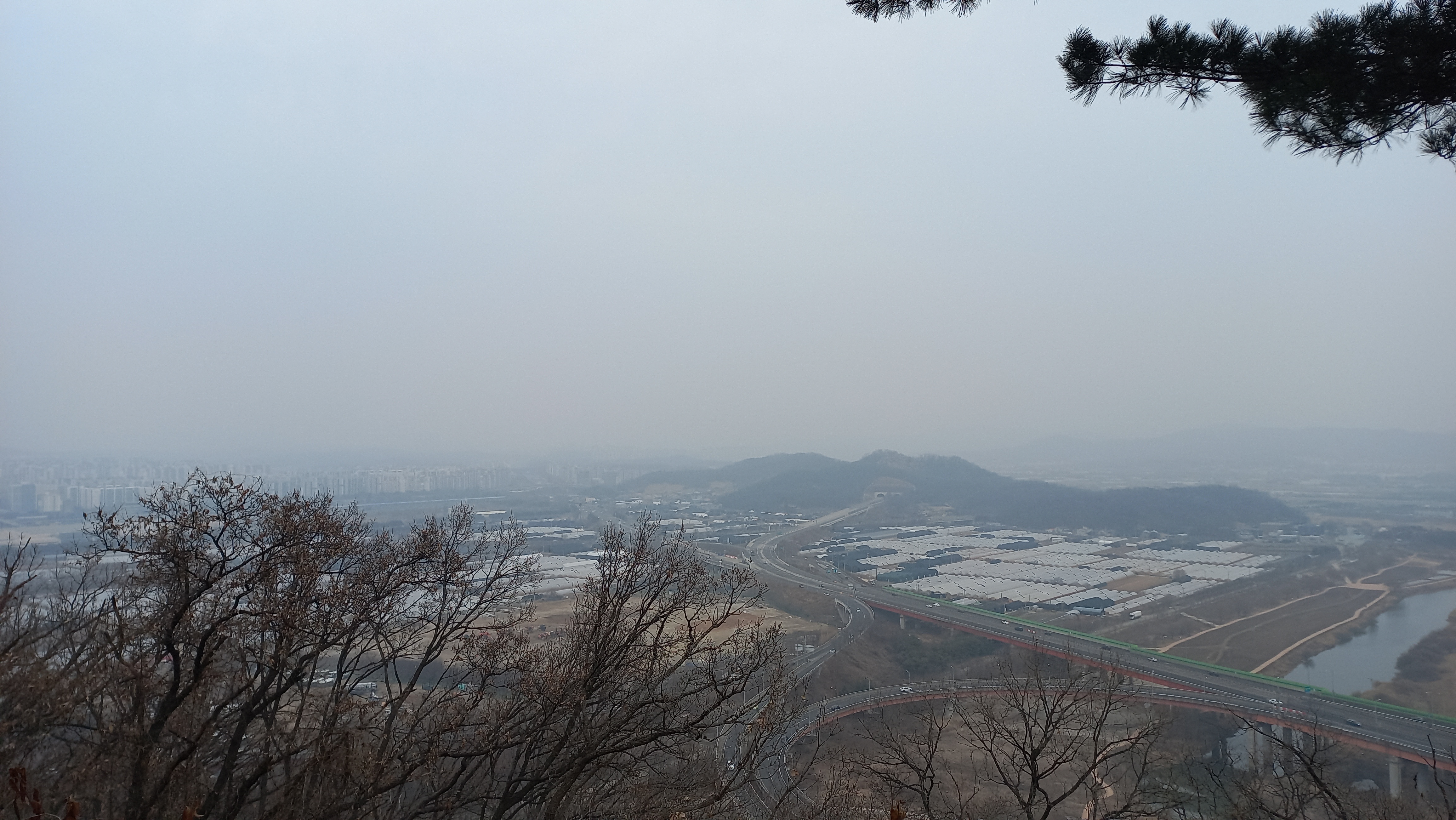 먼지때문에 시야가 막혀 있는데, 맑은 날에는 북한산과 서울 남산, 안산, 인왕산, 관악산, 서울 시내 등을 조망할 수 있는 요충지임을 알 수 있습니다.