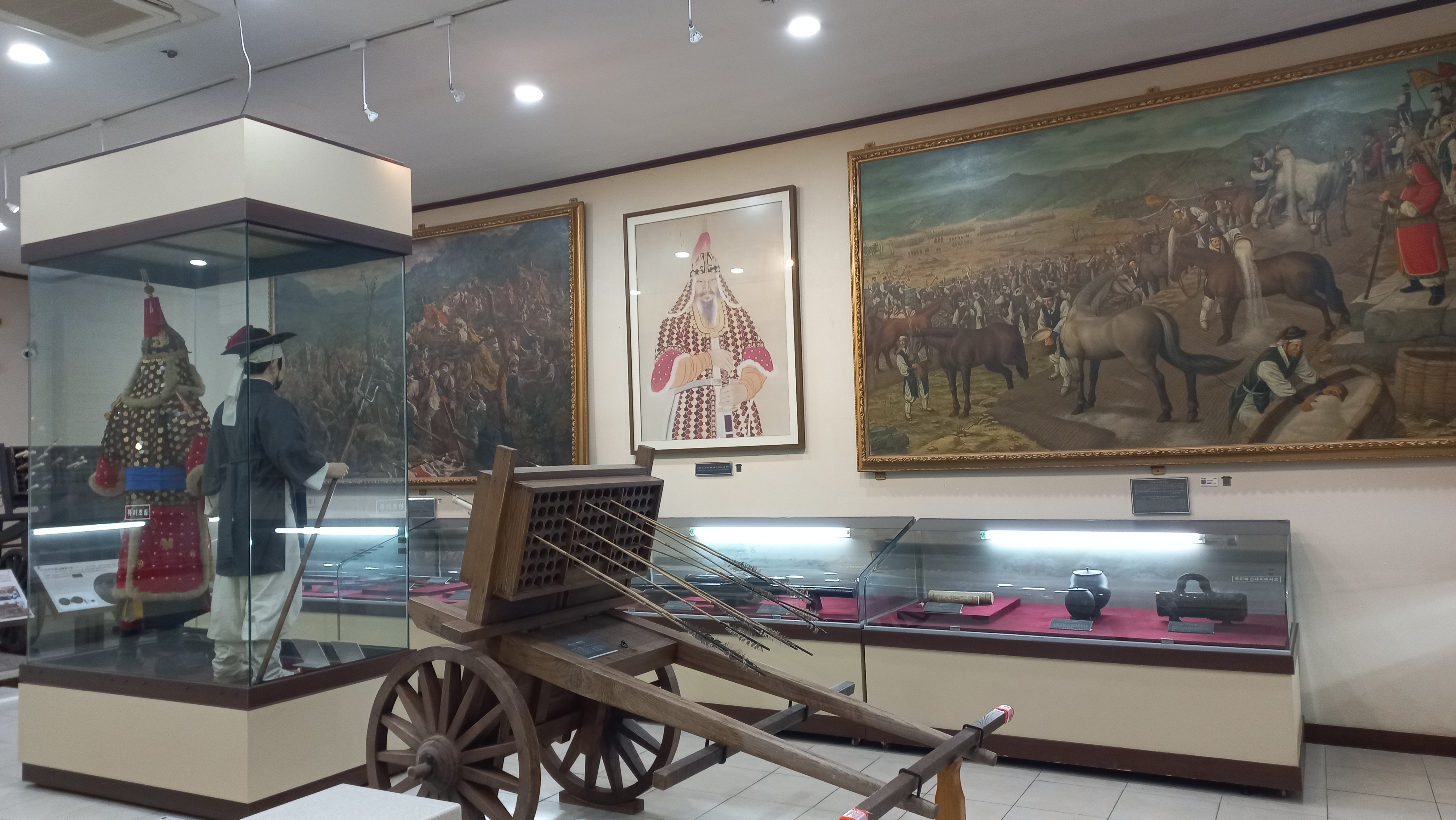 1593년 2월 12일(음, 선조 26) 행주산성 전투 당시 사용된 무기류와 권율장군의 승전모습을 담은 행주대첩도, 충남 금산의 이치대첩도, 오산 독산성 싸움도 등의 기록화가 전시되어 있습니다.