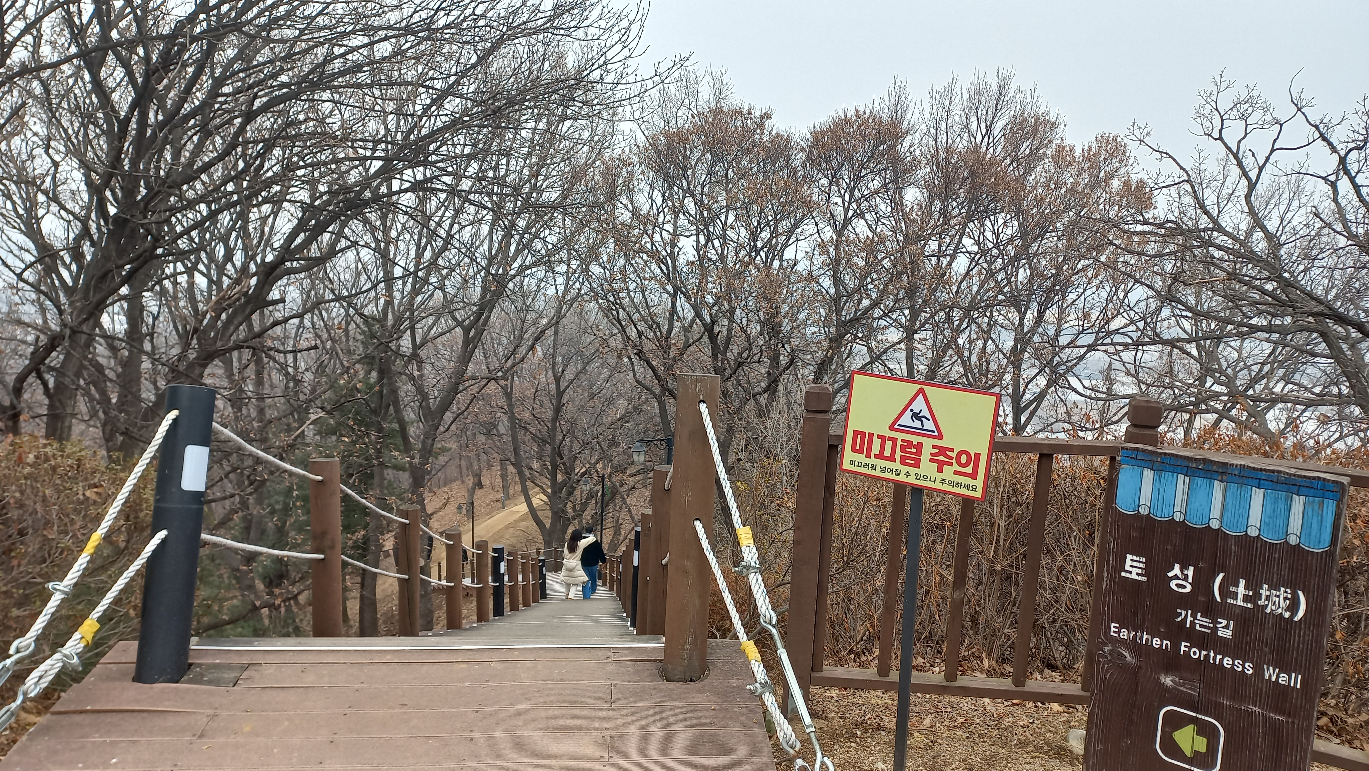나무 데크길을 따라 오르고 내려가기를 반복합니다.