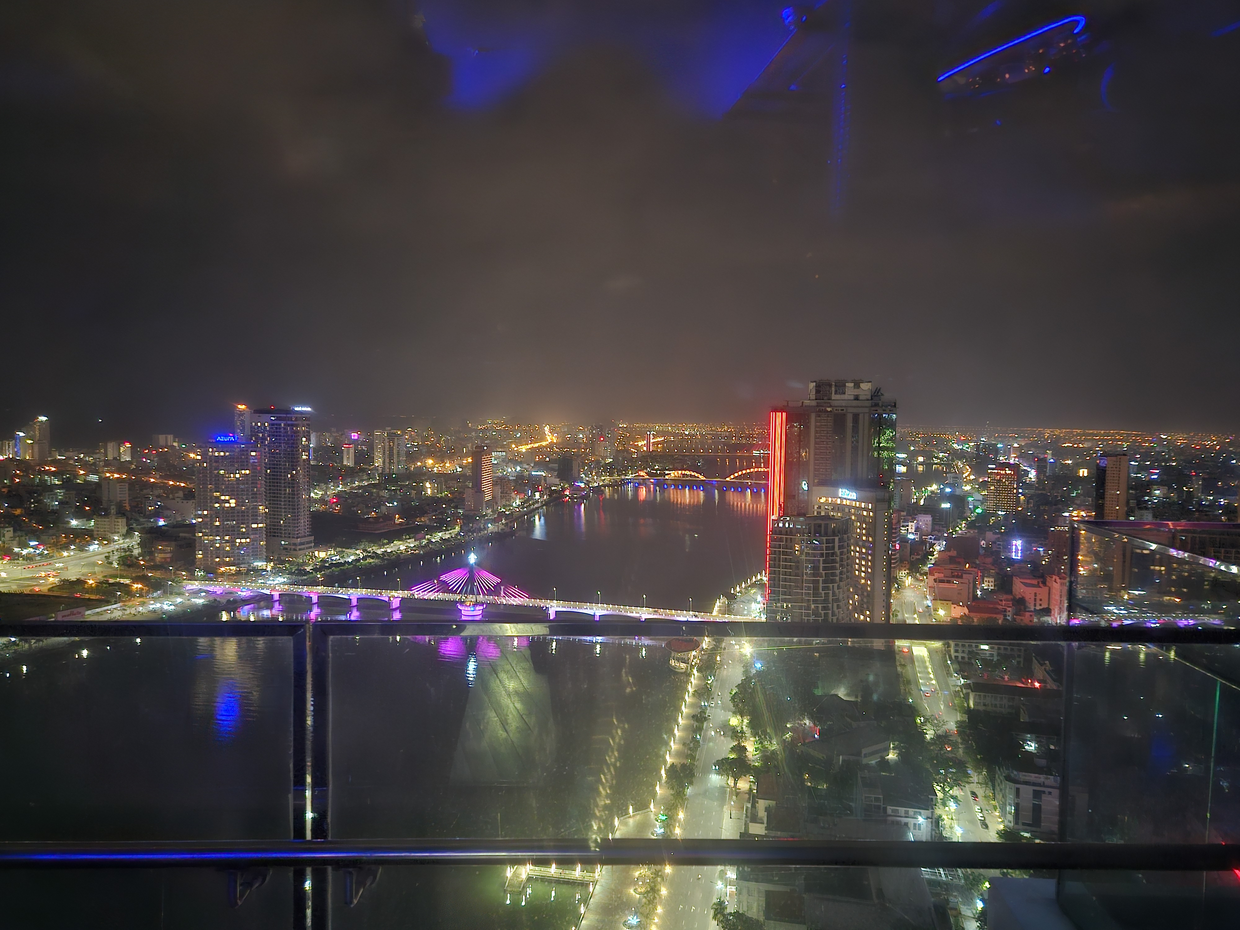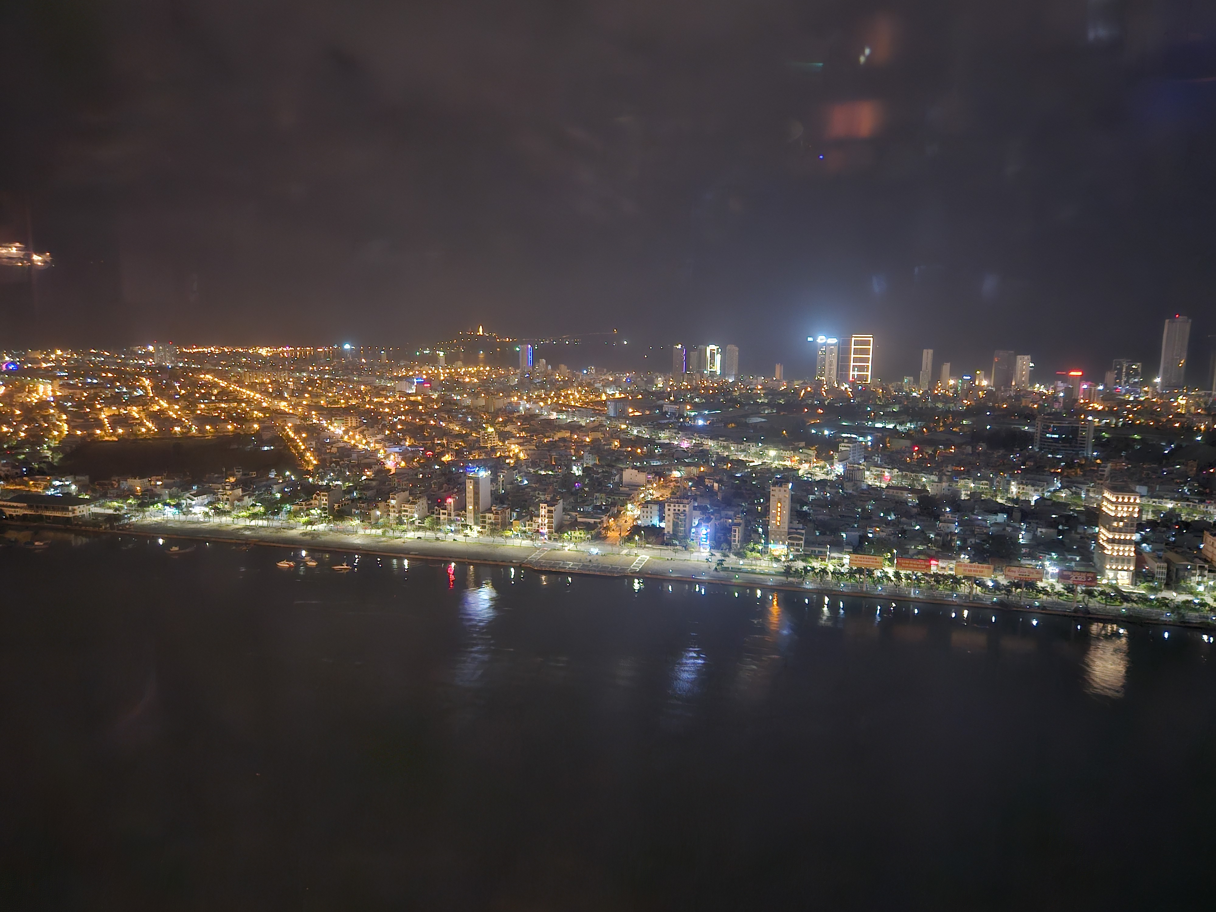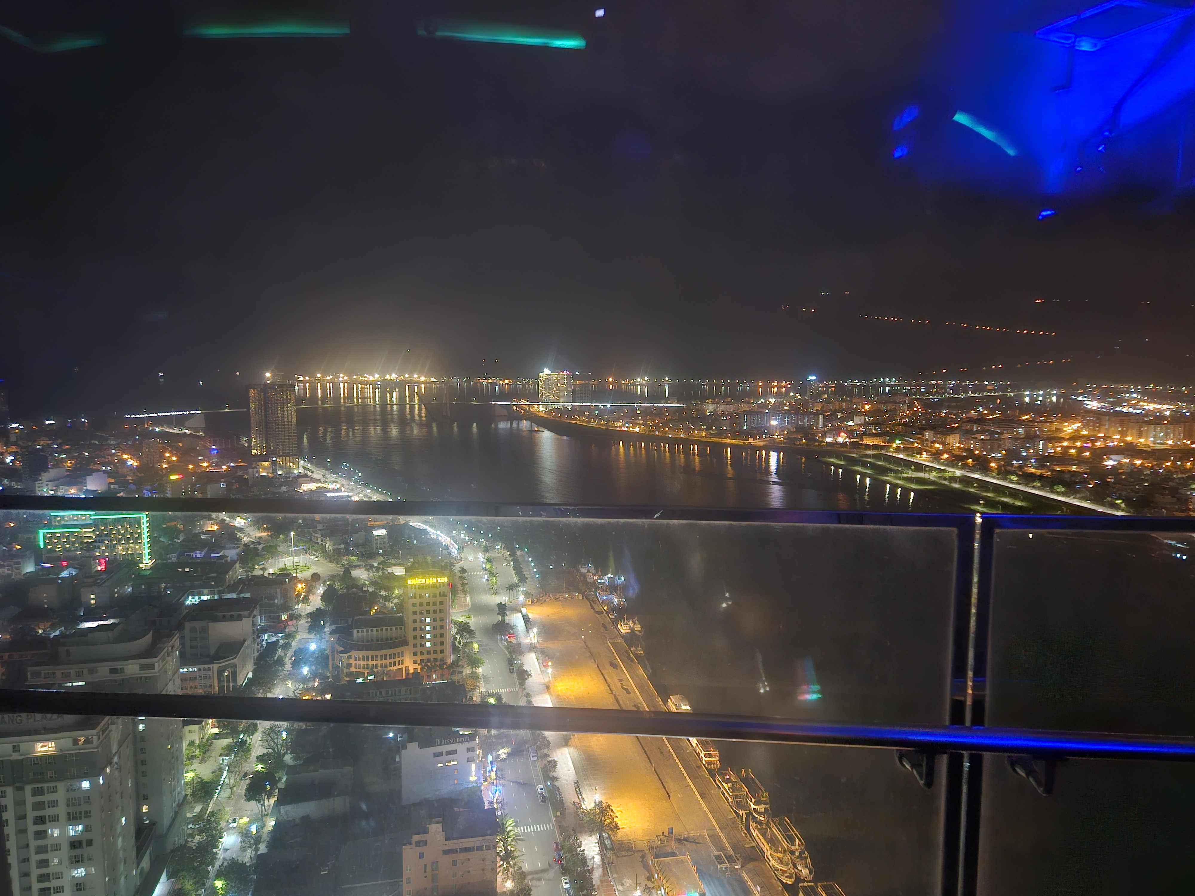 1층에서 33층까지 올라가는 엘리베이터에서 바라보는 다낭 한강 야경입니다.