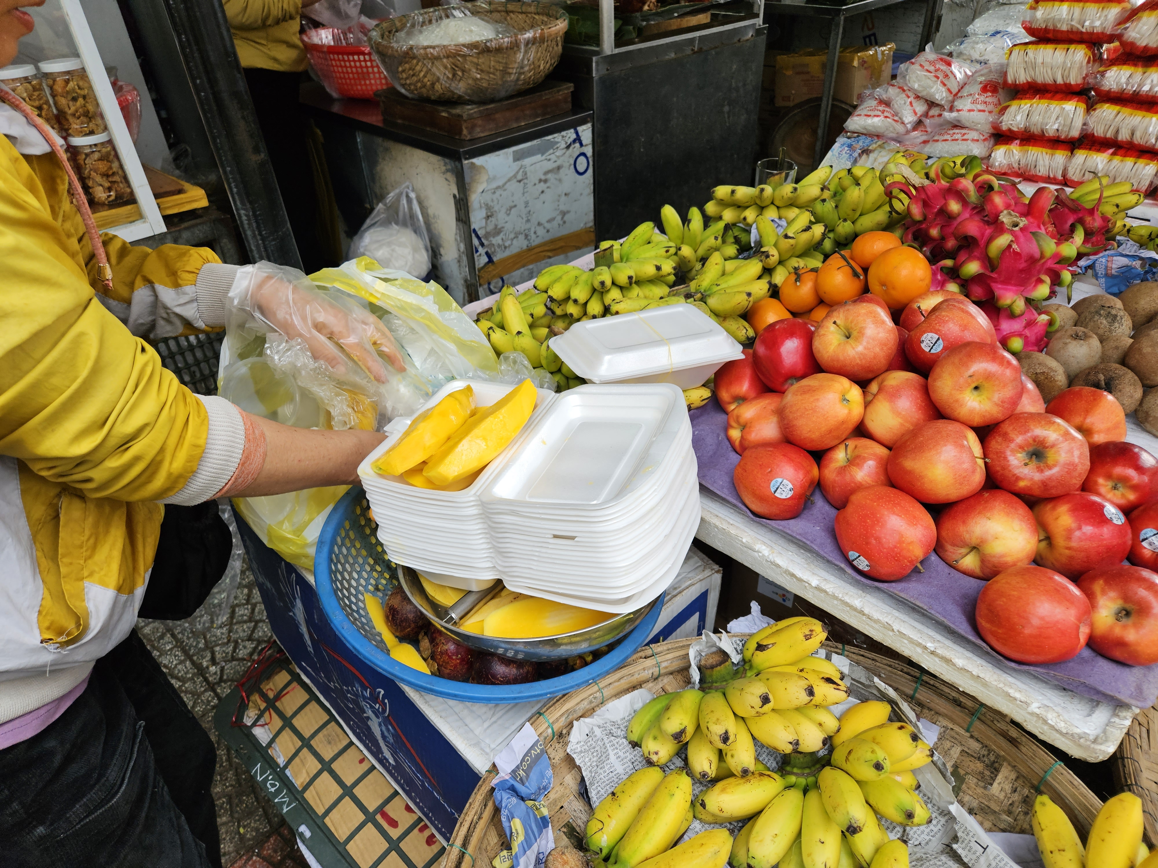 한시장 바깥으로 나오면 열대과일 파는 곳이 있습니다.