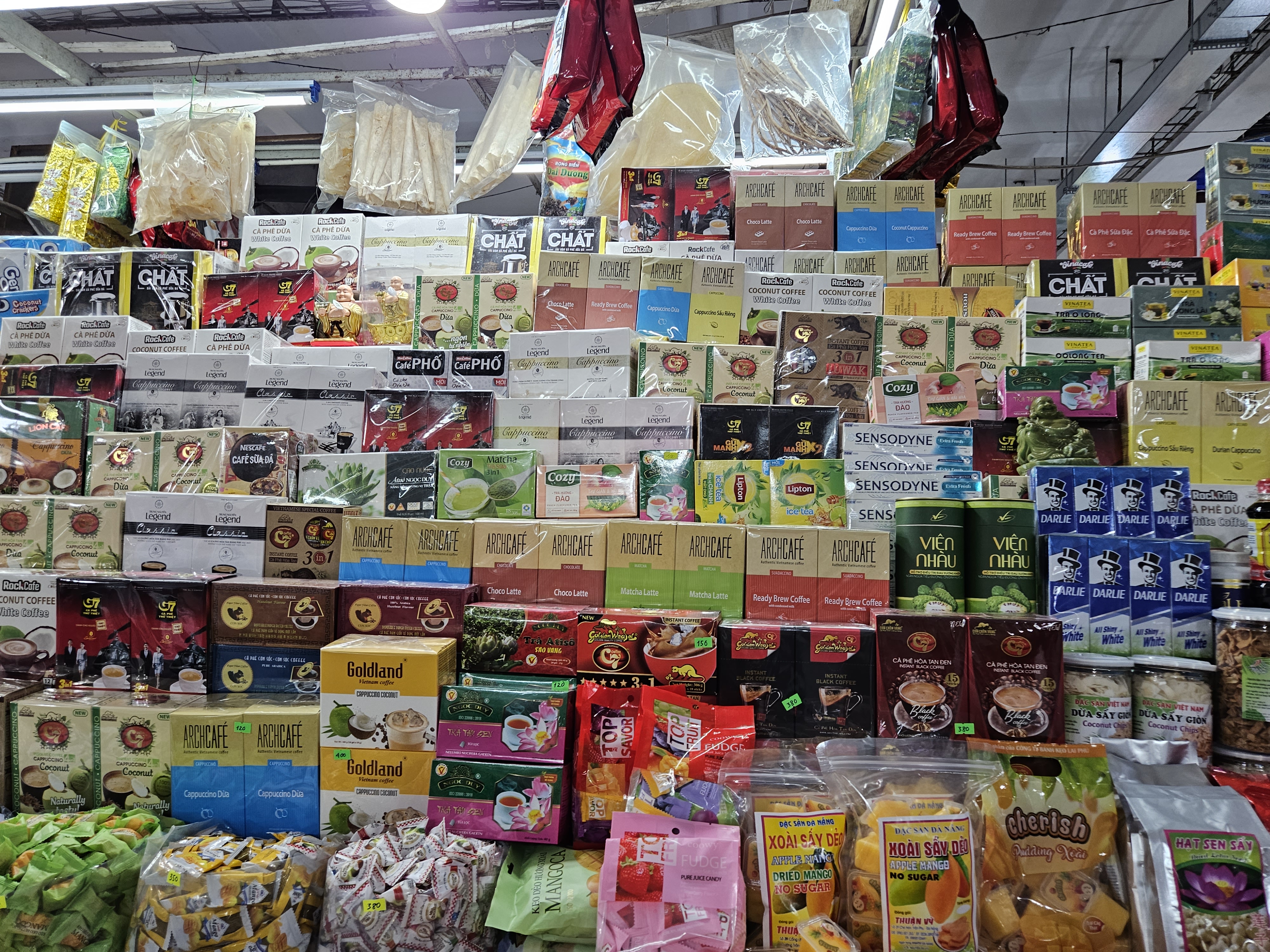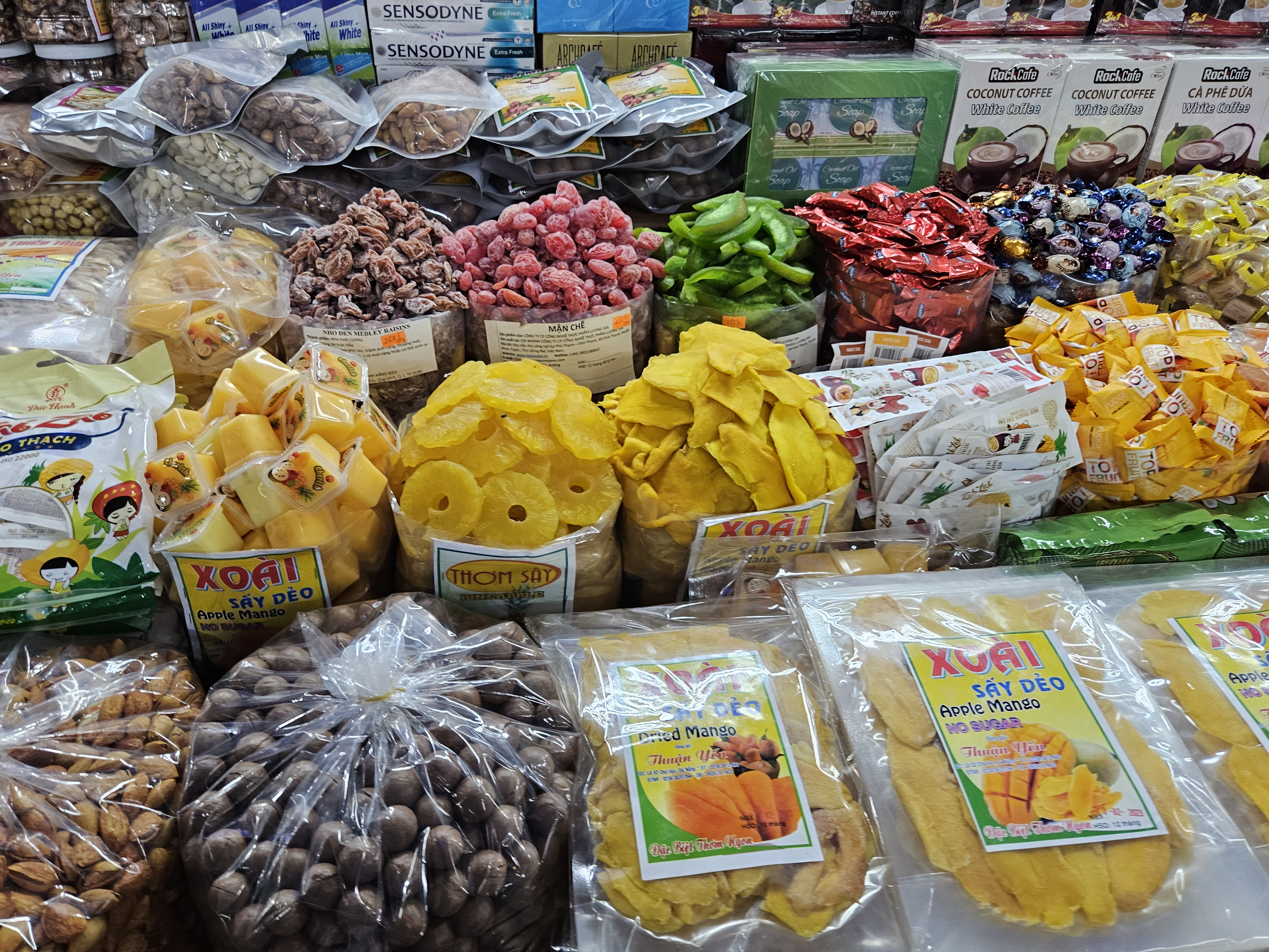 망고 등 과일과 짝퉁 제품, 라탄백, 아오자이 등의 의류와 신발 등을 팔고 있어 외국여행 와서 선물을 주로 많이 사가는 듯합니다.