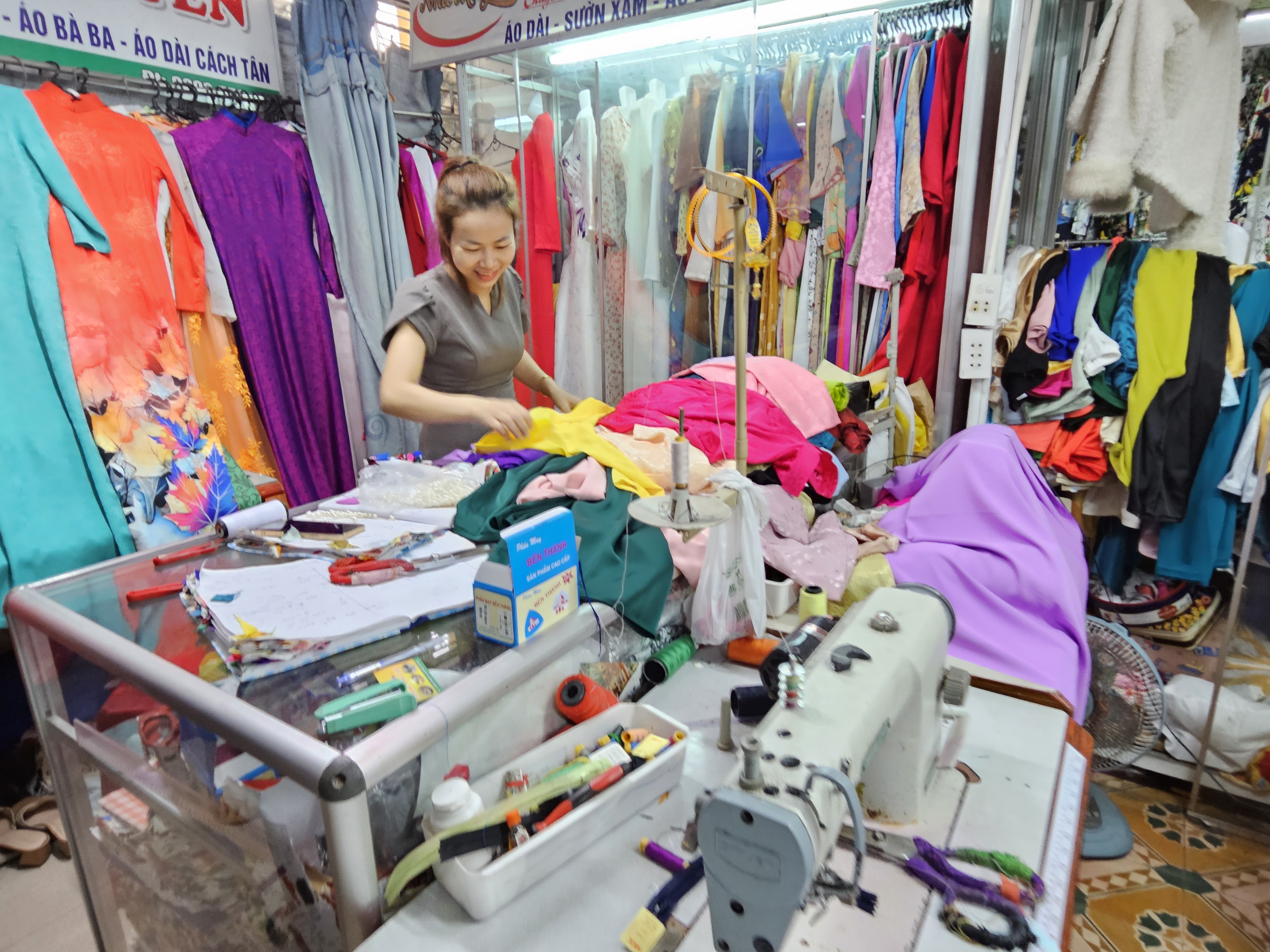 아오자이 기성품을 구입할 수도 있고, 마음에 드는 천을 고르면 직접 재단하여 만들어주기도 한다네요.