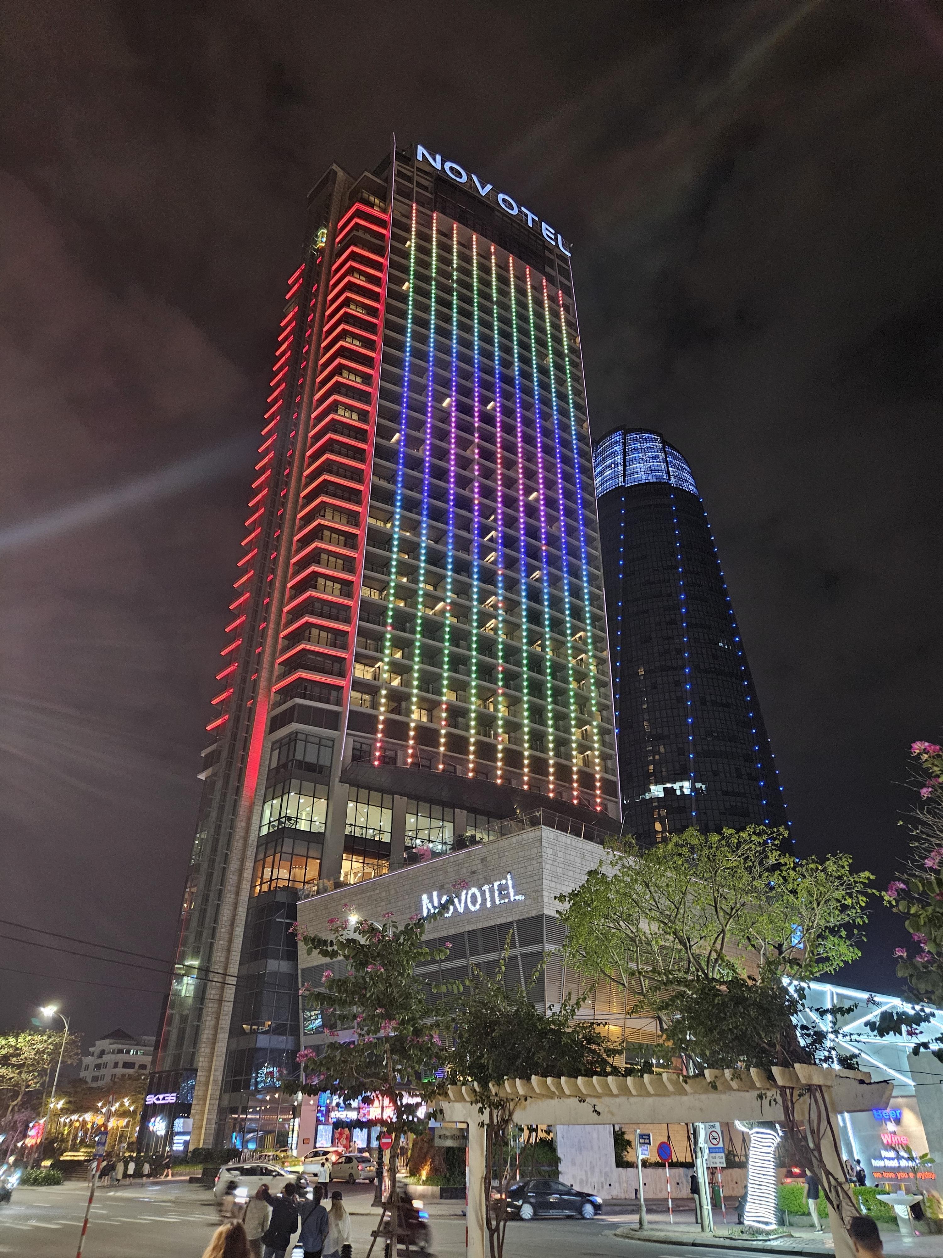 야경이 무척 화려한 5성급 호텔이며, 노보텔 호텔 뒤에 있는 건물은 다낭시청 건물인데요.