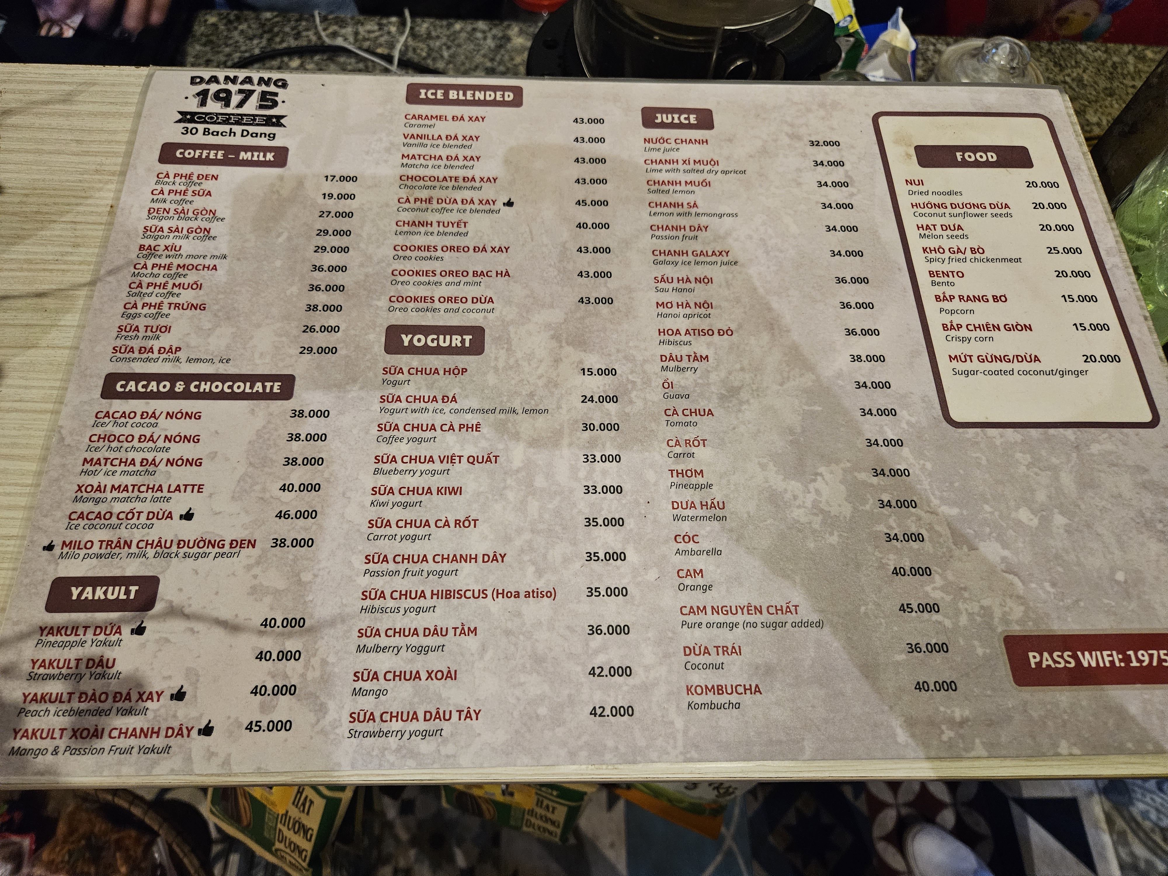 카페 다낭 1975 메뉴