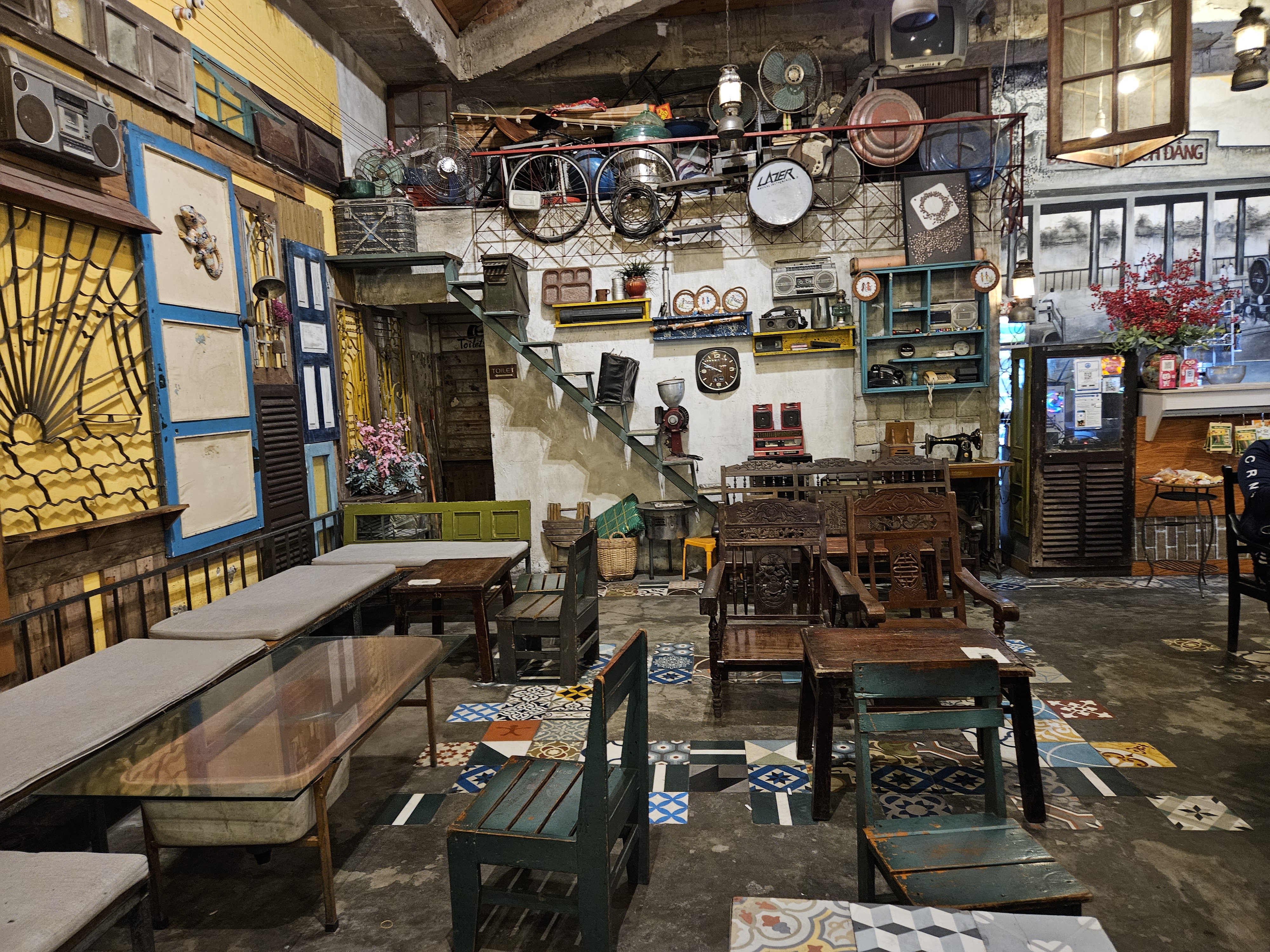잡동사니로 꾸며진 카페 내부 모습