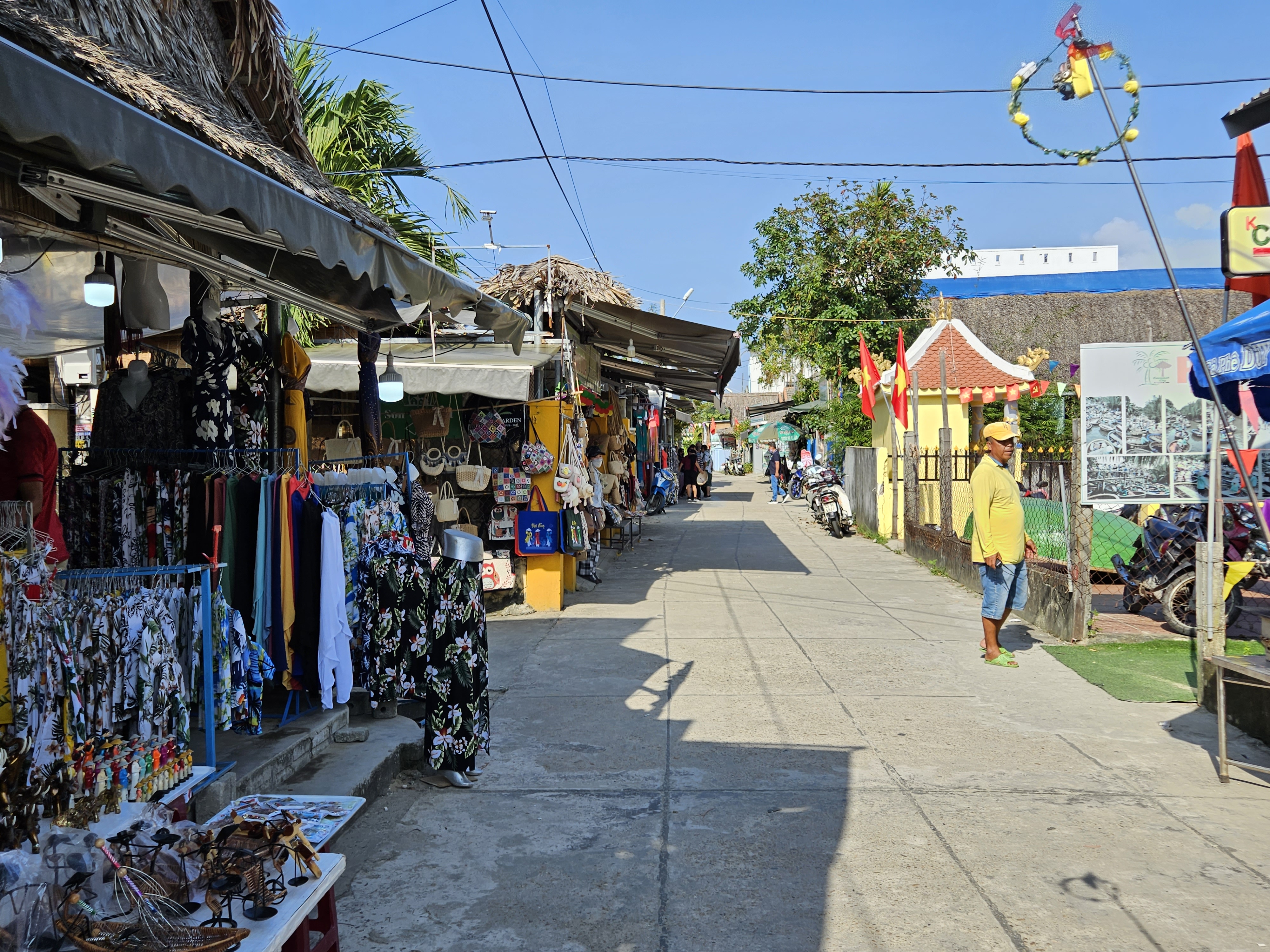 코코넛배 타러 가는 길엔 기념품 상가들이 줄지어 있습니다.