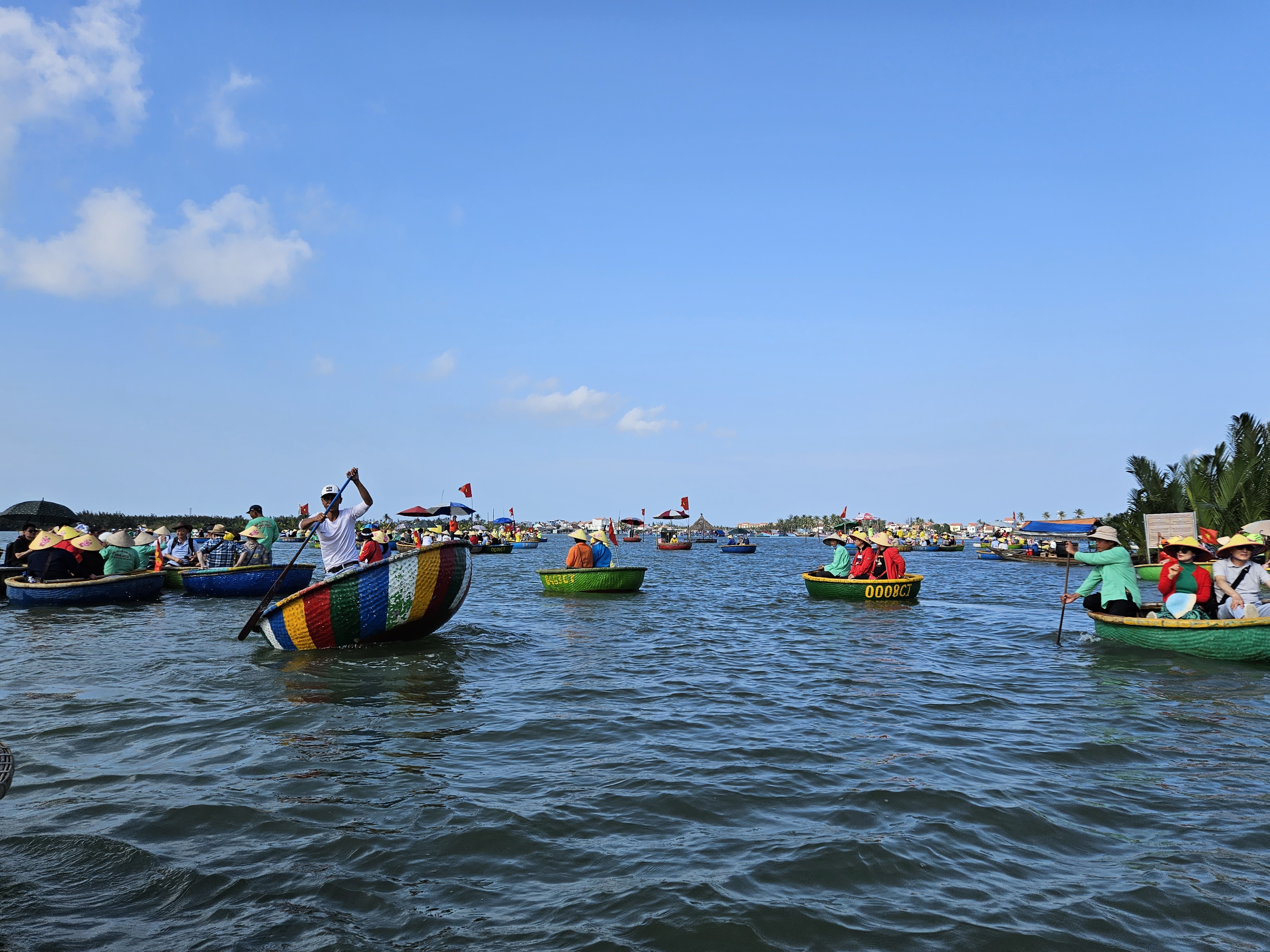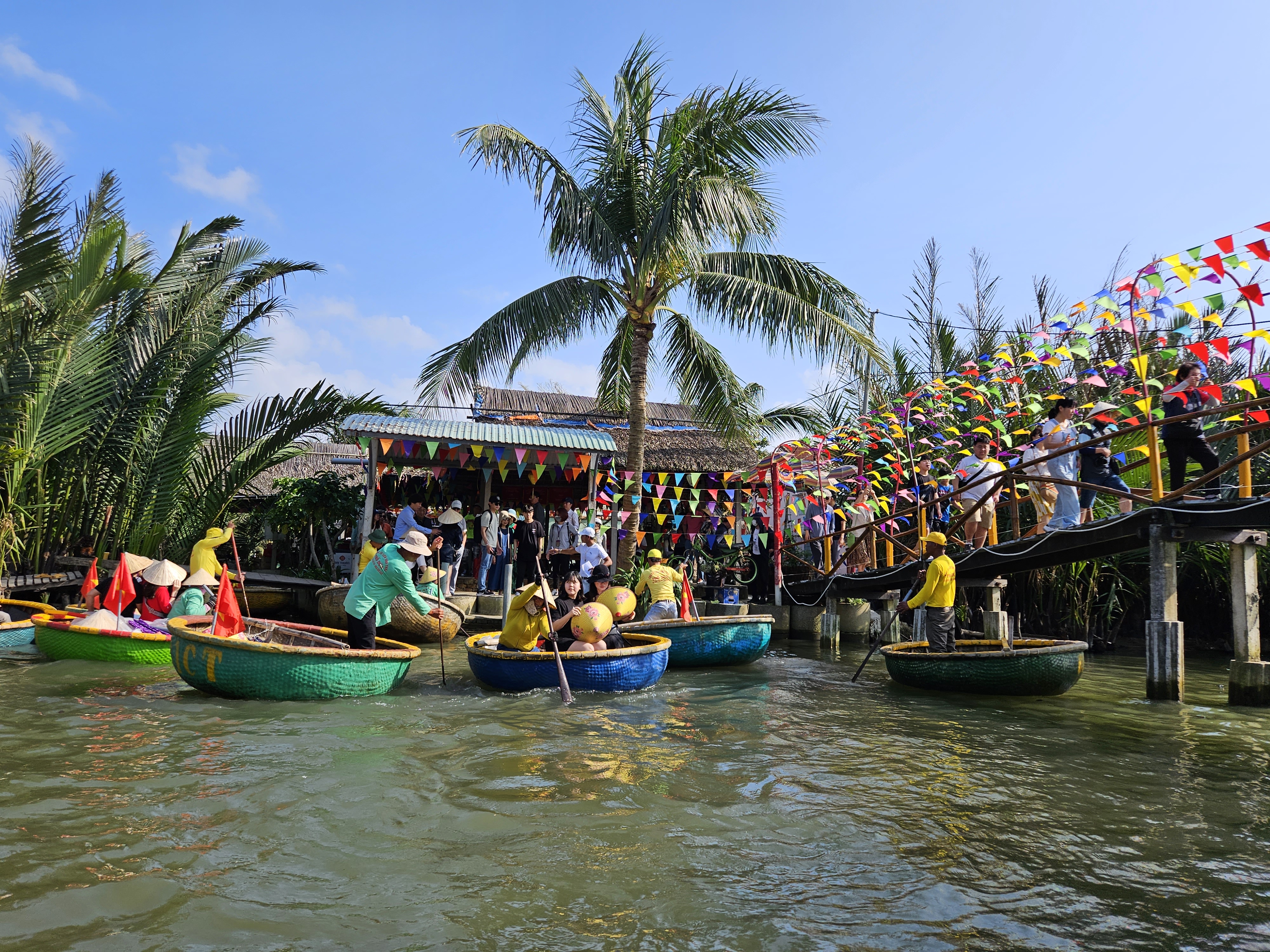 안내하는 사람과 바구니배 체험을 운전하고 진행하며 춤을 추는 사람만 베트남 사람들이고 거의 99%가 한국인들입니다.