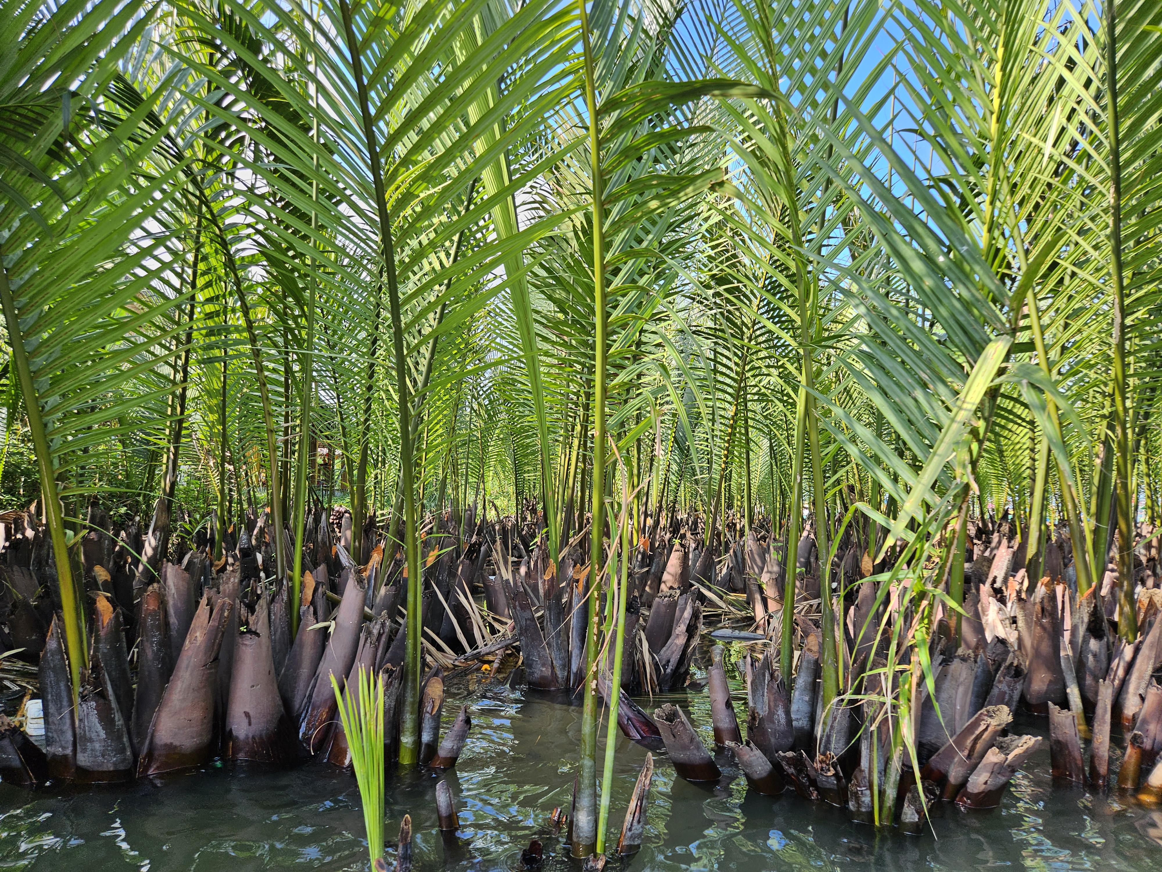 코코넛 나무 밀립을 지나가면 바구니배 체험이 종료됩니다.