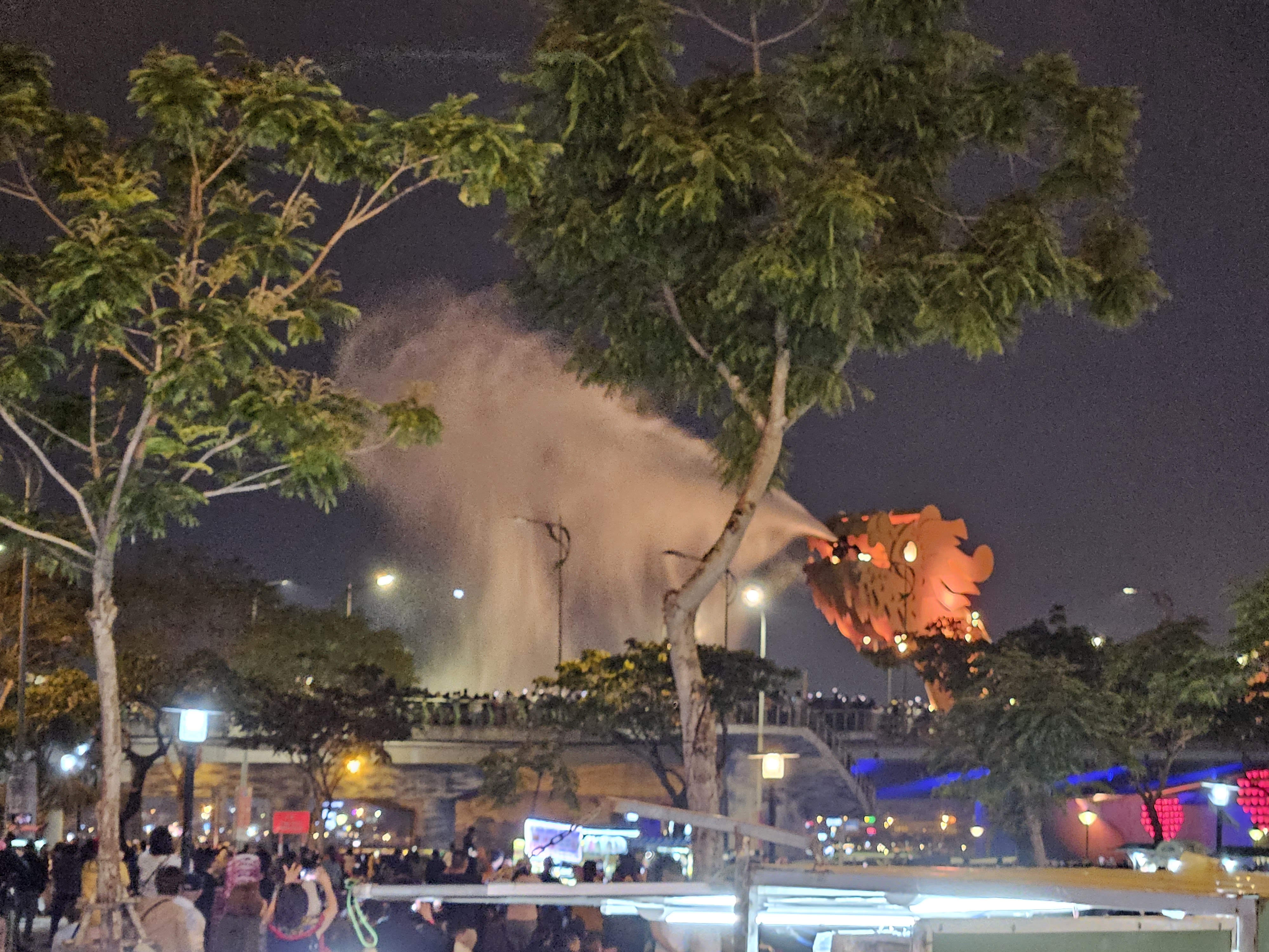 다낭 한강을 가로지르는 용다리(카우롱다리, Cau Rong)의 용 머리 부분에서는 불과 물을 뿌리는 이벤트가 진행되기 때문입니다.