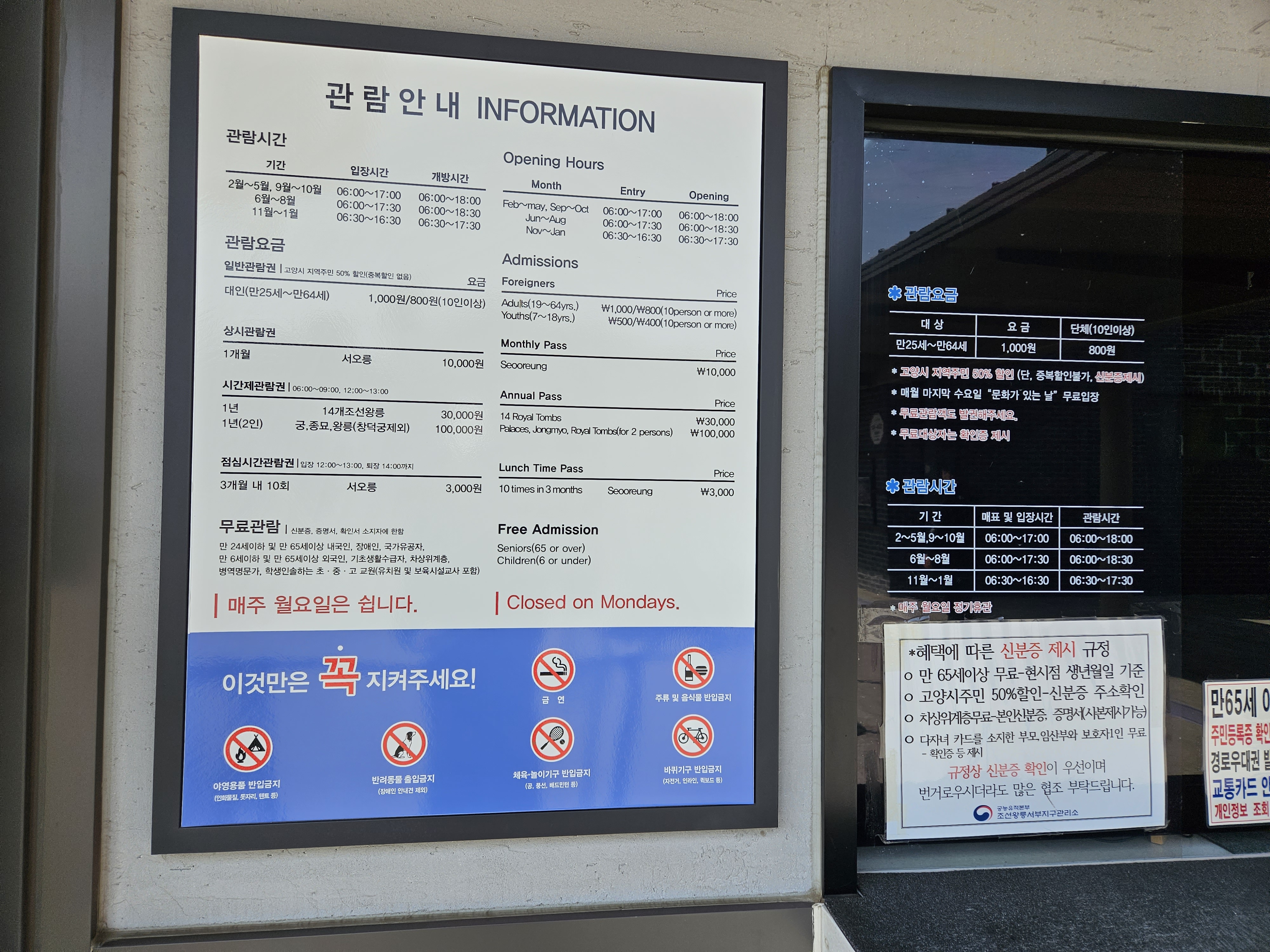 관람시간 : 2~5, 9~10월 06:00~18:00, 6~8월 06:00~18:30, 11~1월 06:00~17:30