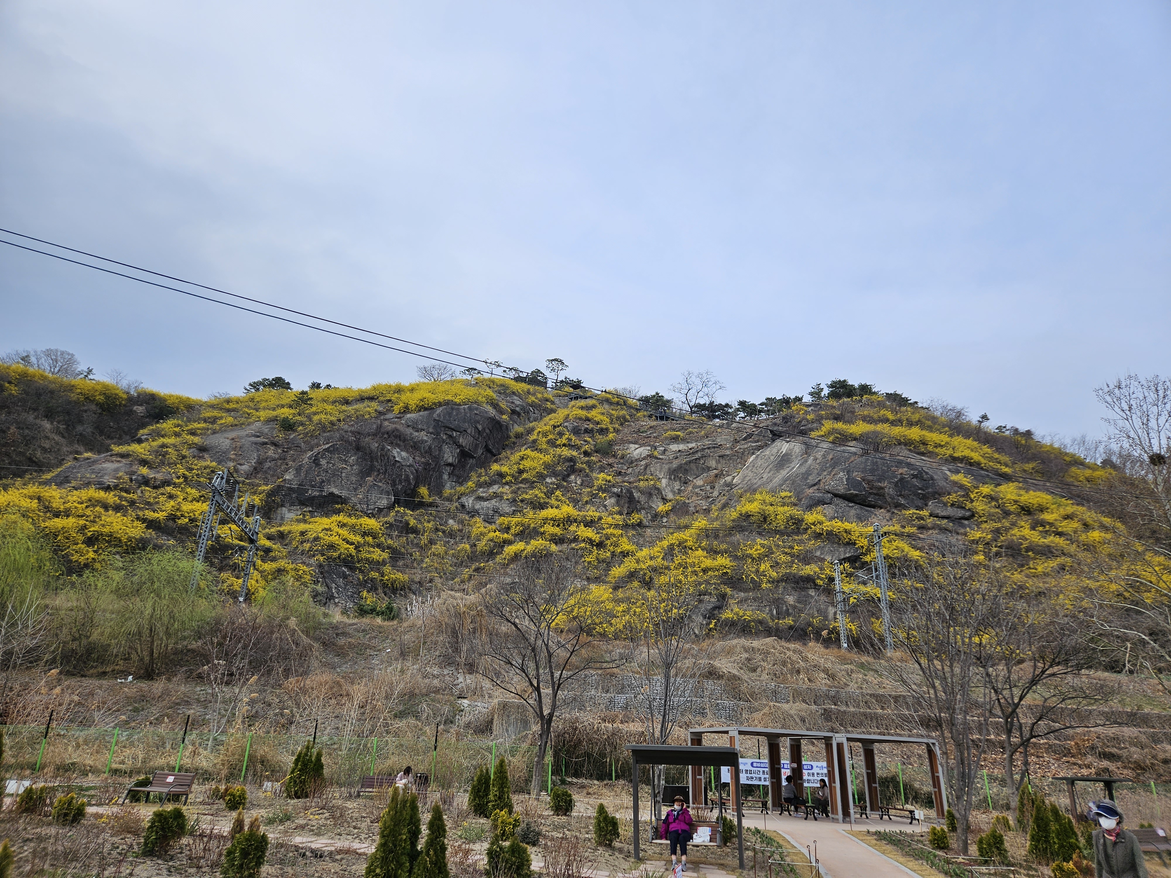 매년 3월이면 산 전체가 개나로꽃으로 덮어 노랗게 변하는 개나리 명소랍니다.