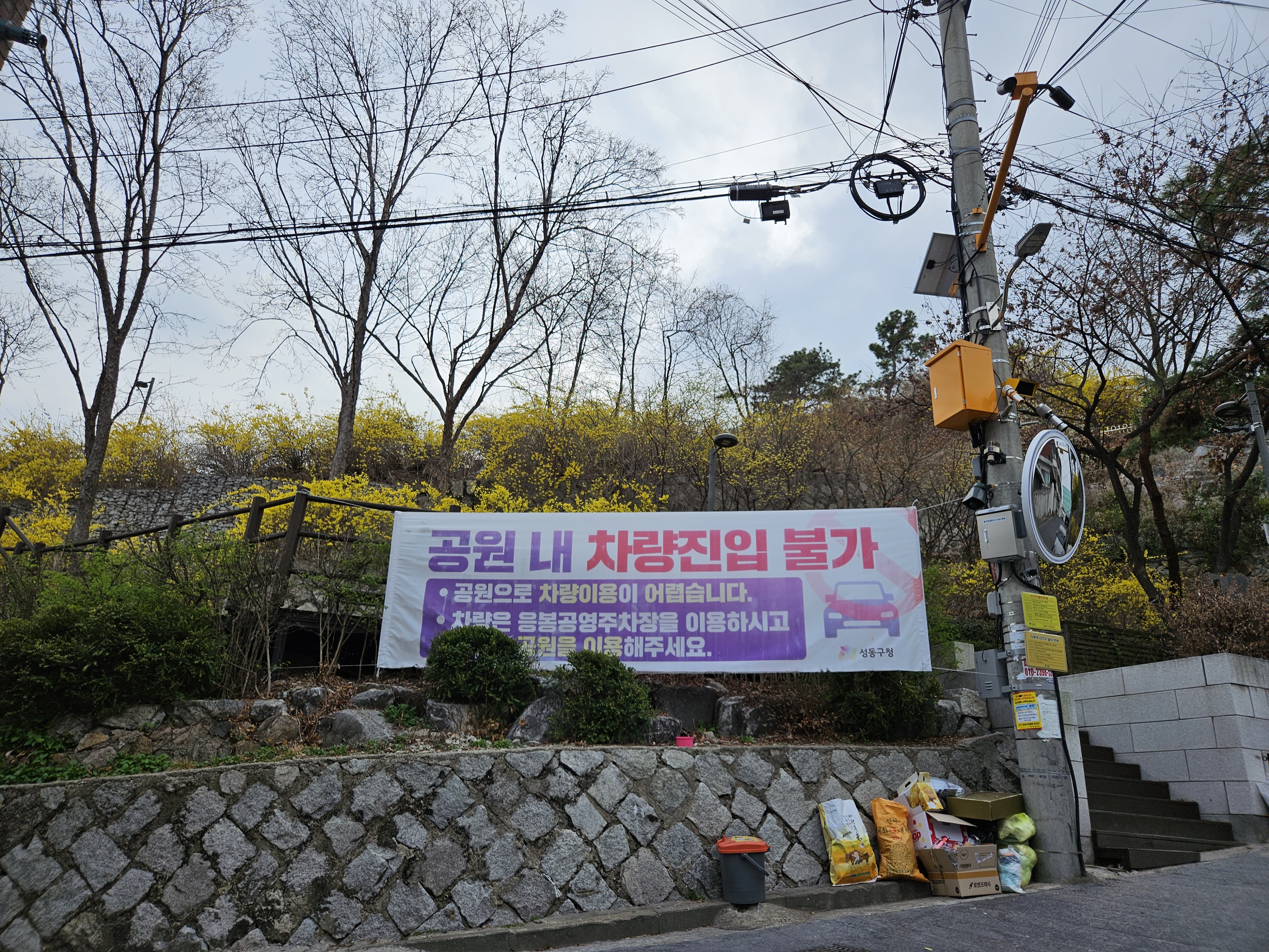 응봉산 입구부터는 공원 내 차량진입을 통제하고 있습니다.